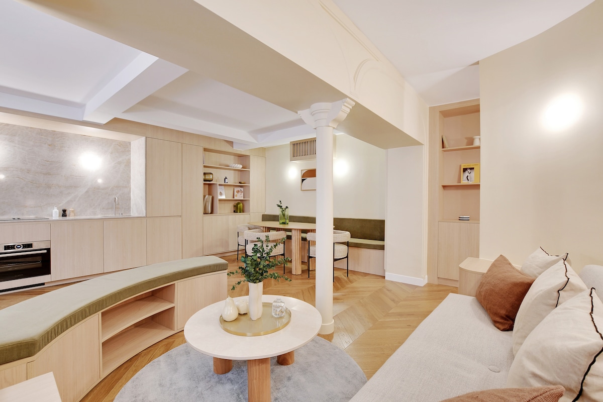 헤링본 파케 바닥, 고급 가구, 풍부한 자연광을 자랑하는 이 세련된 110m2 아파트는 밝고 우아하며 따뜻하고 고급스러운 분위기를 제공합니다. 벽난로와 몰딩이 있는 이 아파트는 파리 역사 지구의 가장 오래된 통로 중 하나에 위치하고 있으며, 매력, 차분함, 편안함을 모두 갖추고 있습니다. 이 아파트는 공식 관광 숙박 운영 허가증을 보유하고 있습니다. 그래서 완벽하게 합법적입니다.