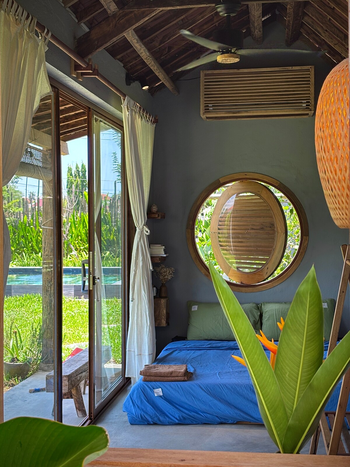 A peaceful garden retreat for researchers and creatives. Surrounded by trees and sunlight, perfect for reading and meaningful living. Located 20 km from Quang Ngai city and 60 km north of Chu Lai Airport, The house has three bedrooms (14–30 m²), all with large window facing the garden, bringing in fresh air and natural light The property covers 230 m², including a green courtyard and shaded outdoor area — perfect for reading, working, meditating, or simply enjoying a quiet cup of coffee.