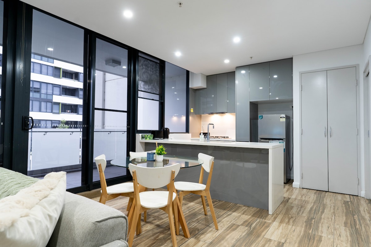 이 새롭고 세련된 아파트에서는 시드니 하버 브리지의 전망을 즐길 수 있습니다. 모든 방에 편안하고 넓은 가구와 퀸사이즈 침대가 마련되어 있어 집과 같은 경험을 선사합니다. 아래층에 있는 무료 헬스장은 여행 중에도 몸매를 유지하는 데 도움이 됩니다. 도보로 2~3분 거리에 훌륭한 레스토랑, 쇼핑(DFO), 의료시설이 있는 훌륭한 위치입니다. 기차역까지 도보로 7분 거리에 있으며, 올림픽 경기장과 아쿠아틱 센터에서 가깝고, 시드니 공항까지 차로 18분 거리에 있습니다.