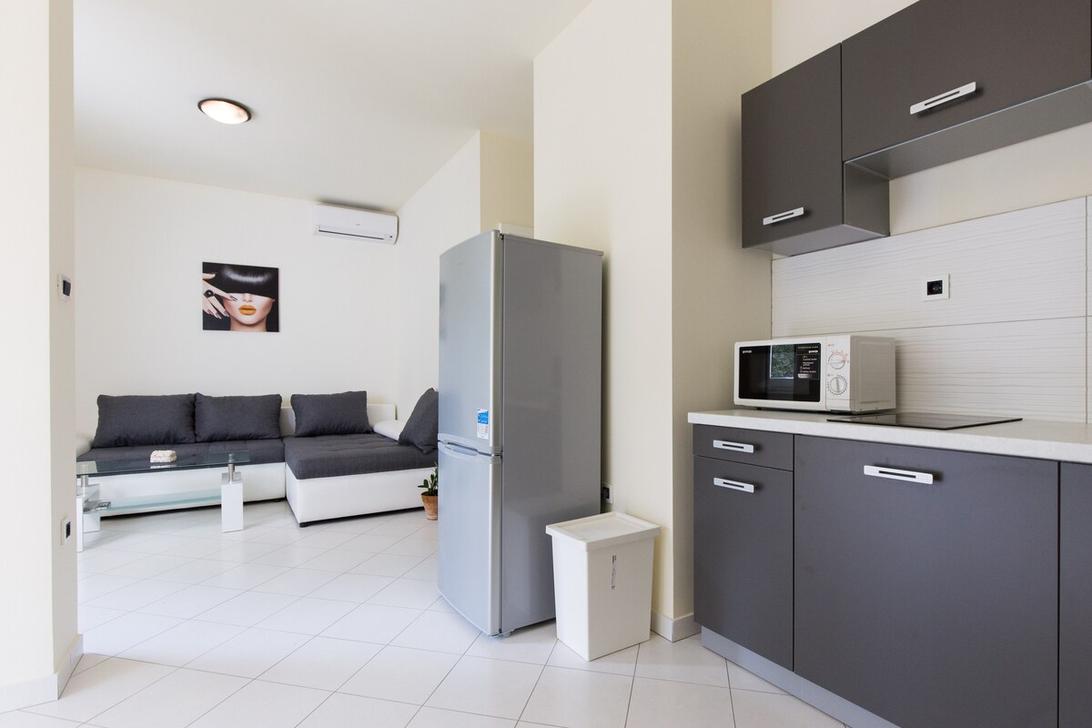 Ovaj moderan i lijepo uređen apartman nalazi se na drugom katu obiteljske kuće. U svojih 50 m2 apartman može ugostiti 4 do 5 osoba, a sastoji se od kuhinje i dnevnog boravka, dvije spavaće sobe s bračnim krevetima, kupaonice s tuš kabinom, i balkona. Od dodatnih sadržaja u ovom apartmanu možete pronaći klima uređaj,WiFi, SAT TV, zajednički roštilj i parkirno mjesto u dvorištu. Kućni ljubimci nisu dopušteni.