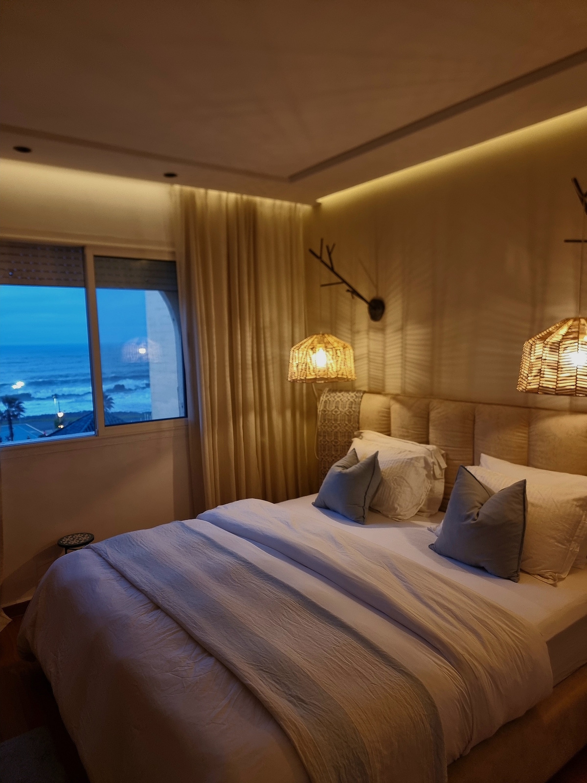 CLOUD SEV7NE RABAT – Bright & Cozy with Moroccan Touch Situé au 7ᵉ étage, cet appartement lumineux et entièrement équipé offre une vue panoramique unique sur Rabat. Avec sa décoration moderne et sa touche marocaine (lampes artisanales, tableaux des monuments de la ville), il peut accueillir de 1 à 4 personnes, idéal pour un voyageur solo, un couple ou un groupe cherchant confort, style et authenticité au cœur de la ville.