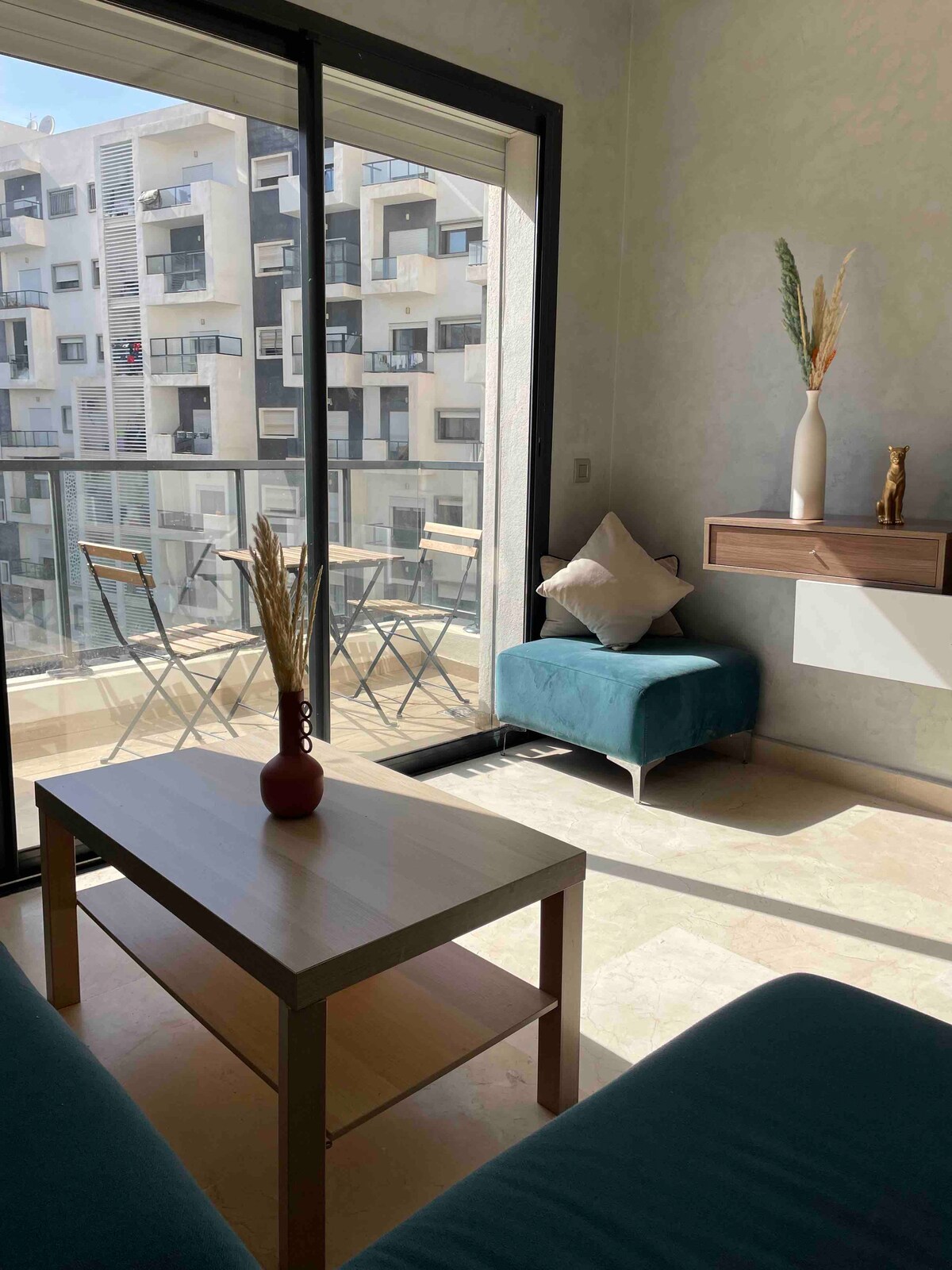 Experience luxury in the heart of Rabat, Morocco's capital city! This refined space features cozy nooks, a comfortable bed, a fully-equipped kitchen, and free WiFi. It has everything you need for a soothing stay. This modern apartment is located in the chic upper side of Agdal, close to the Sofitel Hotel, Descartes School, and Ibn Sina Forest. Conveniently located, the flat is few steps away from the main street, full of shops, cafes and restaurants. It's only 10 minute-drive from the Medina.