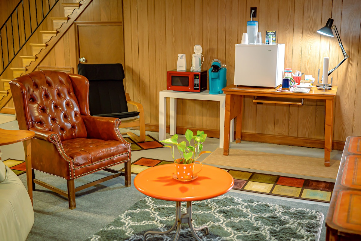 외부에서 스위트로 들어가는 전용 출입구. 이 스위트에는 1.5개의 욕실/퀸사이즈 침대/수건/시트/담요/WIFI TV/세탁기 및 건조기/미니 냉장고가 포함되어 있습니다. 전자레인지/토스터 오븐//커피포트/토스트/식기/주전자가 있는 작은 주방, 숙소는 언덕에 있지만 76/202/422번 고속도로와 가깝습니다. 필라델피아 센터 시티까지 약 40분, 공항까지 30분, KOP 몰/KOP 센터/밸리 포지 국립공원/웨인 다운타운/노리스타운/빌라노바 대학교까지 10분 이상.