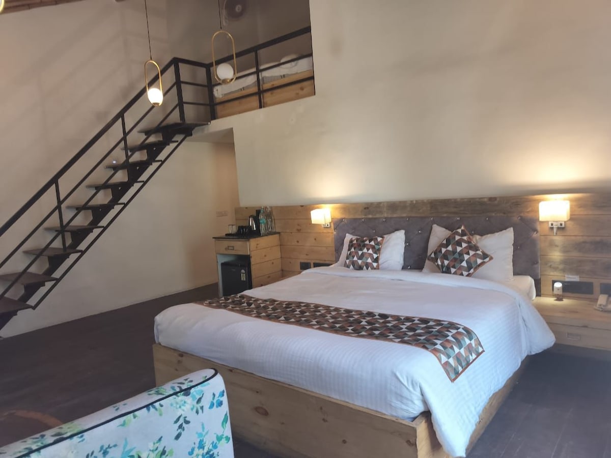 럭셔리 다락방 스위트는 친밀함과 우아함을 추구하는 여행객을 위해 만들어진 쾌적하고 빛이 가득한 안식처입니다. 비스듬한 나무 천장, 층층이 쌓인 질감, 계곡이 내려다보이는 전용 발코니가 있어 긴 아침, 느린 저녁, 조용한 명상을 즐길 수 있습니다. 엄선된 인테리어부터 부드러운 산의 빛까지 모든 디테일이 고요함의 보금자리를 만들어 냅니다. 커플이나 나홀로 여행객에게 이상적인 이 스위트는 세련된 편안함과 람가르 언덕의 시대를 초월한 매력이 조화를 이루고 있습니다.