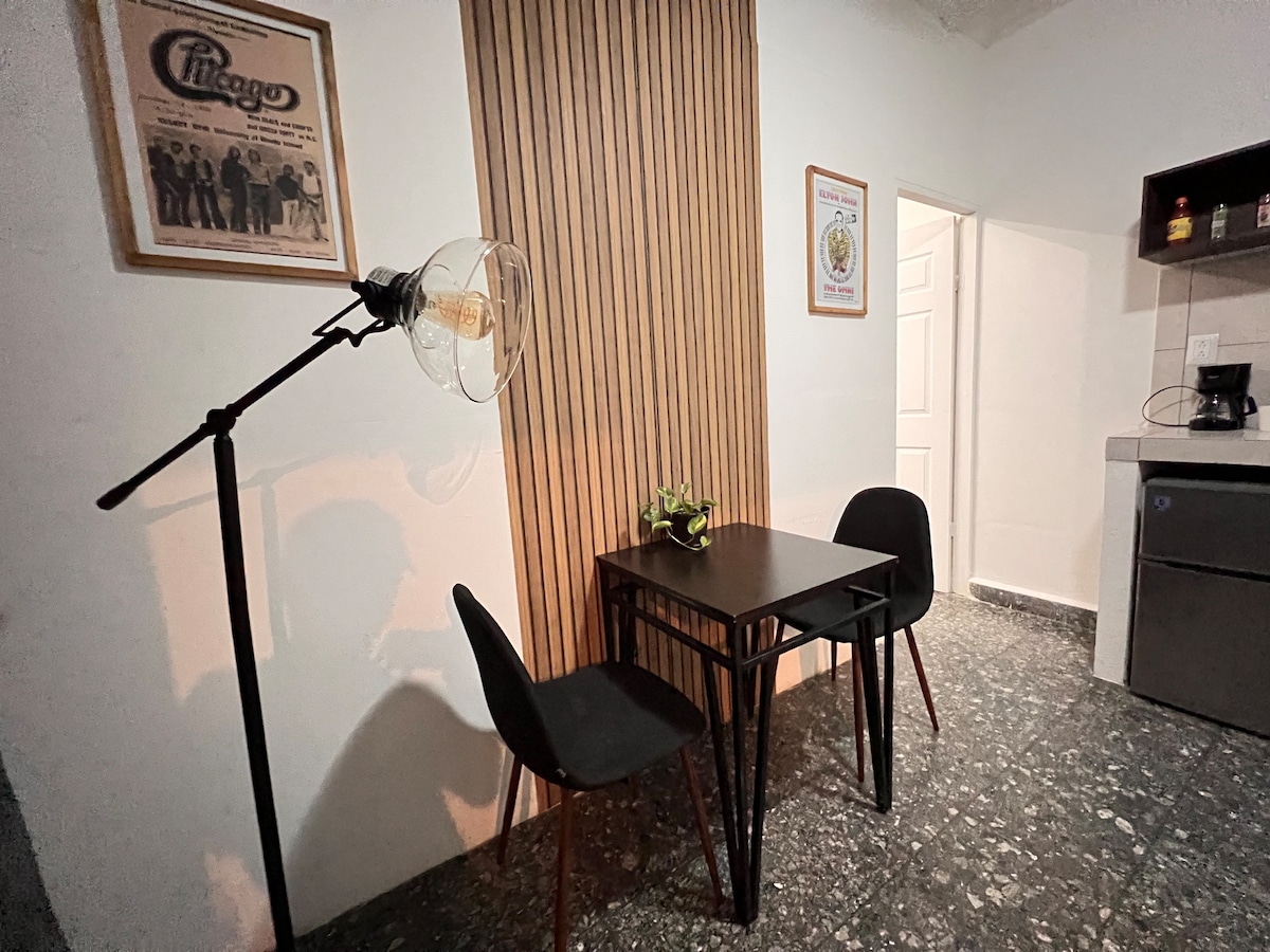 콜로니얼 시더 가구가 있는 100 mgb/s의 와이파이가 있는 로프트 타입의 객실입니다. 욕실이 완비되어 있으며 편안함을 느끼기에 가장 필요한 시설 중 하나입니다. 킹사이즈 침대, 팽창식 매트리스, 식사 공간, 스크린으로 나뉜 거실, Rustico TV. 넷플릭스. 욕실과 파우더룸. 간이 주방, 냉장고, 에어컨, 미니 스플릿 2톤. 서랍이 있는 대형 옷장, 금고.