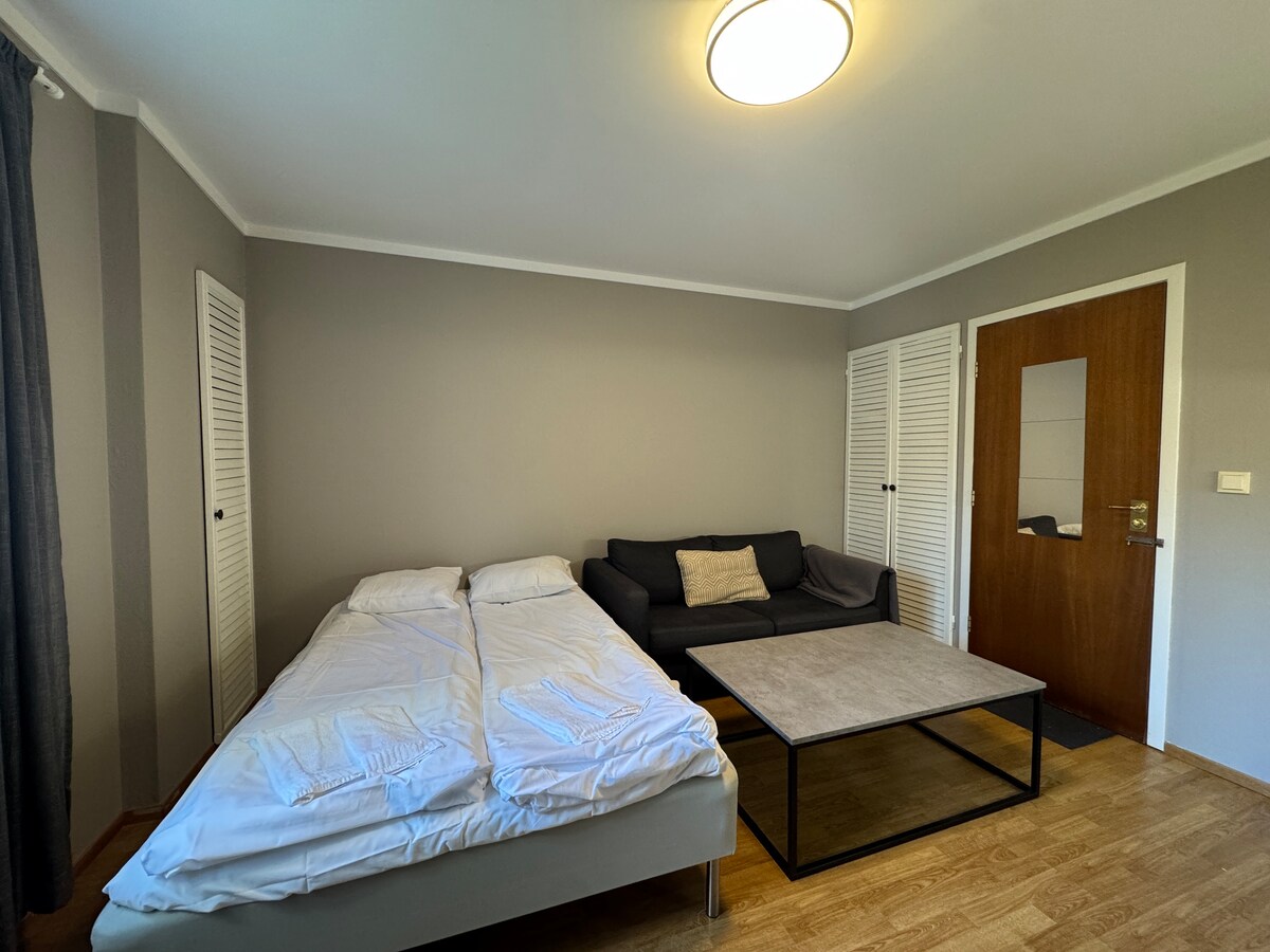 카날뷔엔에 위치한 이 아파트는 크리스티안산의 중심에 있는 오데로야의 바닷가에 위치하고 있으며 킬덴, 쿤스트실로엔, 피스케브뤼가, 쿨투르토르게트와 가깝습니다. 카날비엔에서 도보로 5분 거리에 마르켄스가 있습니다. 아파트에는 복도, 거실/주방, 침실 1개, 세탁기가 있는 욕실 1개가 있습니다. 거실/주방에서 숲과 산이 내려다보이는 발코니로 나갈 수 있습니다. 지하 주차장에 있는 차량을 대여할 수 있습니다.