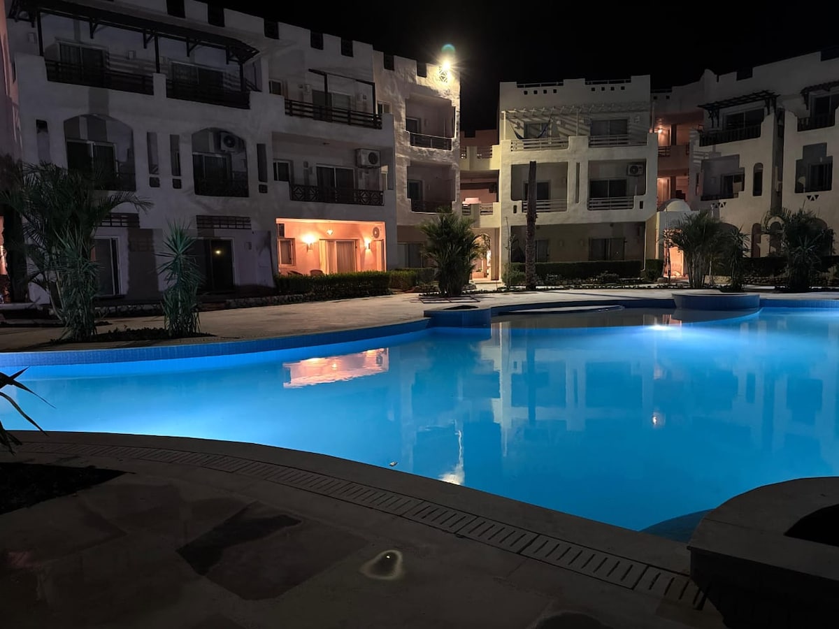 "평화로운 샬레에서 가족과 함께 휴식을 취하세요. 9개의 수영장과 전용 해변을 무료로 이용하실 수 있습니다. 레스토랑 2개, 카페 2개, 자전거 대여소, 배구 코트가 있습니다. 또한 2개의 아쿠아 파크가 있어 더욱 즐거운 시간을 보낼 수 있습니다. 조용한 시간을 보내거나 온 가족이 함께 즐거운 시간을 보내기에 완벽한 공간입니다. " 골든 비치에는 성인 1인당 EGP 300의 일회성 입장료가 있으며, 숙박 기간 동안 골든 비치 게이트에서 수금됩니다.