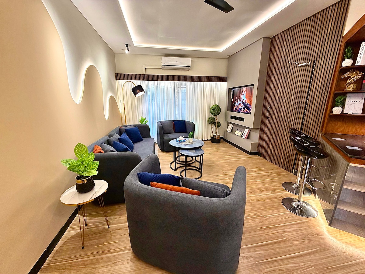 마라케시 4. 해외 파키스탄인들이 귀국할 수 있도록 설계된 최초의 에어비앤비 숙소. 바닥에서 천장까지 이어지는 창문, 고급스러운 가구, 차분한 뉴트럴 색조가 따뜻하면서도 국제적인 생활 수준을 연출합니다. ☕️ 넓은 라운지, 현대적인 주방, 발코니 전망이 있는 조용한 침실을 즐기세요. 파키스탄 중심부에서 고급스러움과 친숙함을 모두 추구하는 가족에게 완벽한 숙소 🇵🇰 페이즈 7 푸드 스트리트에서 단 7분 거리에 위치해 있어 현지 음식과 세계 각국의 음식이 활기차게 어우러진 분위기를 즐길 수 있습니다. 🥘