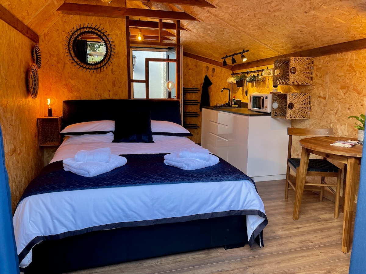 Your own private stylish cabin, own entrance, self check-in. King-size bed, en-suite, kitchenette & private outside space. 8min walk to 2 stations into central London (Waterloo 25min, Wimbledon 15min). Good links to Hampton Court, Kingston upon Thames, Surrey walks and villages. Superloop 7 Bus (SL7) direct to and from Heathrow Airport, 1hour. Very quiet residential road with free parking. No more than 2 guest permitted at anytime on the property. No smoking/vaping on the property.