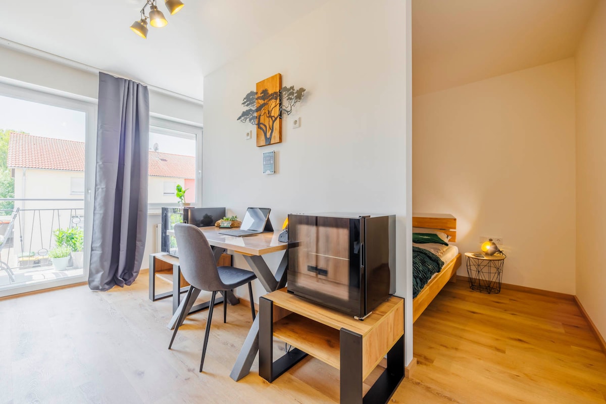 또한 업무 또는 추가 교육을 위해 레겐스부르크에 있는 사람들을 위해 2베드룸 게스트 아파트를 제공합니다. 최소 4박 이상. 최대 3 ~ 5개월까지의 장기 숙박 예약에는 특별 요금이 적용됩니다. 침실 1개만 검색하세요. 침실 1개 숙소를 예약하세요. 같은 아파트입니다.