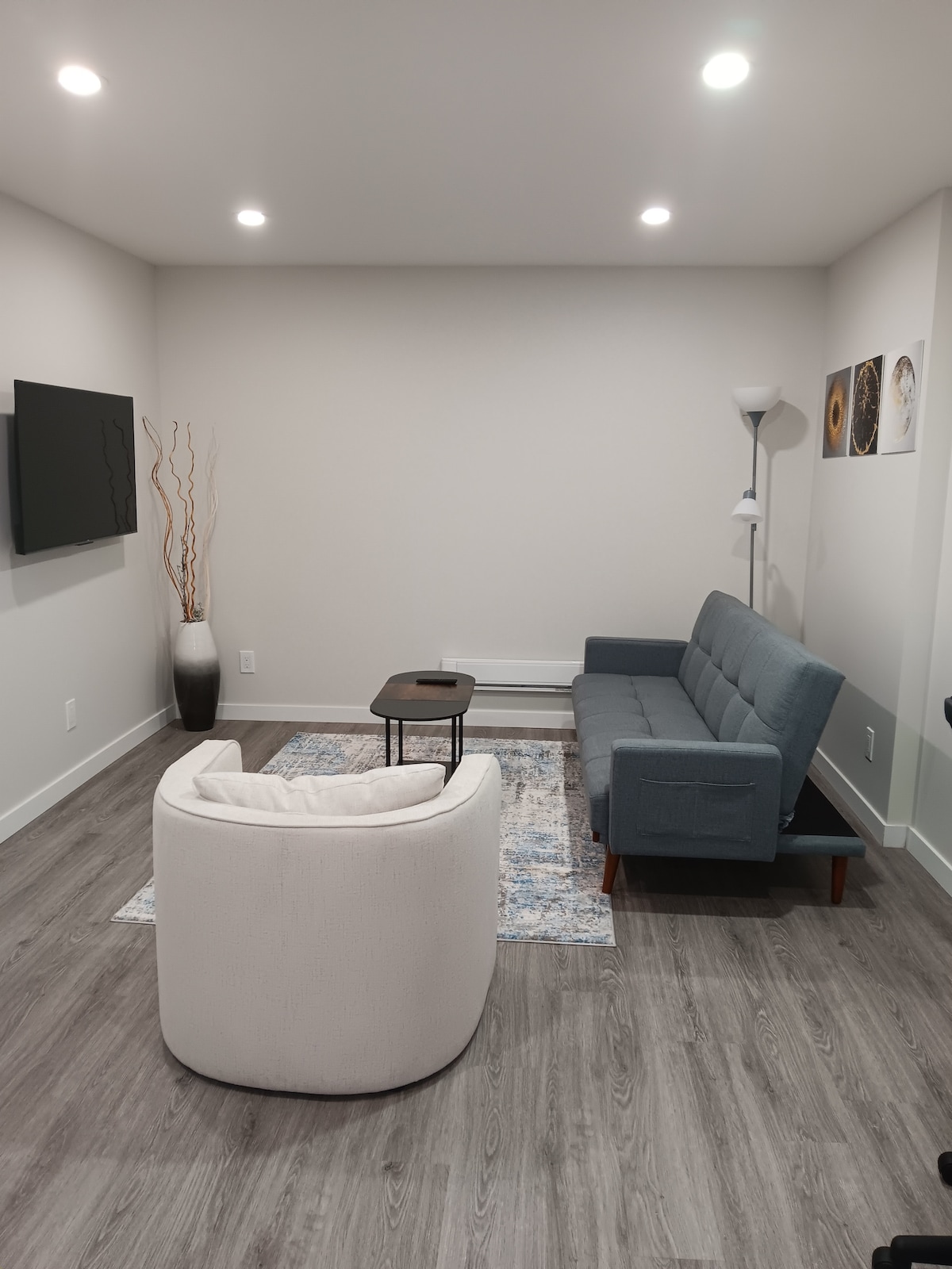 Tucked away in one of the city’s newest prime neighborhoods, this brand-new basement suite invites you to reset. Soft neutrals and clean lines set a calming tone, while curated touches bring quiet luxury. Sink into a full-sized bed, stream with fast WiFi, and explore with ease. Whether you’re here to work, wander, or unwind, this peaceful retreat makes every moment feel intentional. Enjoy a 10% discount on stays of 7 nights or more. Get 20% off when you book for 28 nights or longer.