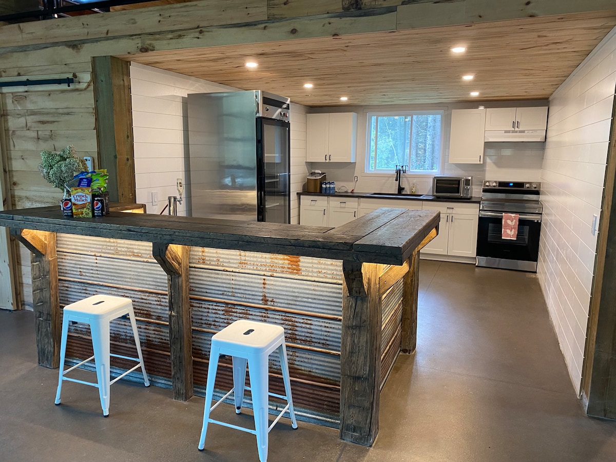 WOOD BURNING SAUNA & HOT TUB⭐️ONE OF A KIND, 1800 sq. ft BARNDOMINIUM on 18 acres of total privacy! Serene, country getaway in the picturesque countryside of Erin⭐️Full-size kitchen,harvest table,spotless bathroom, couch & chairs set infront of the floor to ceiling glass doors⭐️Cozy loft with tv, comfy queen bed & oversized couch. ⭐️Soaring trees & trails,grain bin bar on concrete pad with fire-pit, tables & chairs.Wood deck with patio set.Separate cabin with double bed. You won’t want to leave!