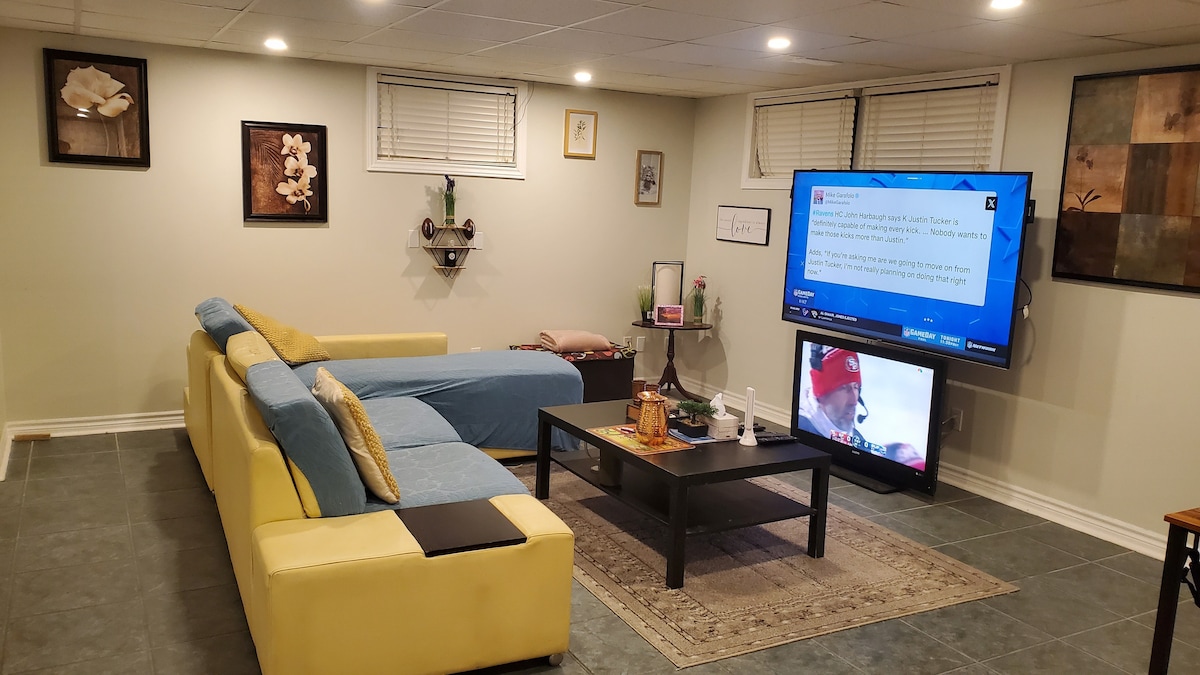 Your family will be close to everything when you stay at this centrally located place. walking distance to Trillium hospital as well as shopping grocery stores and all convenience. 7 km away from Square one. 8 km away from the GO station. 30 minute drive to downtown Toronto. Please be aware that this is a basement suite and it can get cold when it's very cold outside. I have adjusted the price accordingly. It is certainly comfortable enough it just may require an extra sweater.