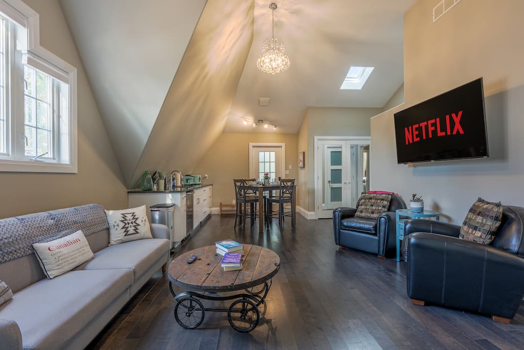 유명한 와이너리와 유서 깊은 나이아가라 온 더 레이크 시내에서 차로 가까운 거리에 위치한 넓은 럭셔리 로프트 아파트로 떠나보세요. 침실 3개, 욕실 2개가 있는 안식처는 최대 6명까지 숙박할 수 있습니다. 짧은 휴가를 즐기러 오시든 가족 어드벤처를 즐기러 오시든, 현대적인 감각과 매력적인 분위기를 좋아하실 것입니다. 럭셔리 로프트에는 높은 아치형 천장, 거실의 현대적인 벽난로, 게스트가 즐길 수 있는 전용 발코니도 마련되어 있습니다.