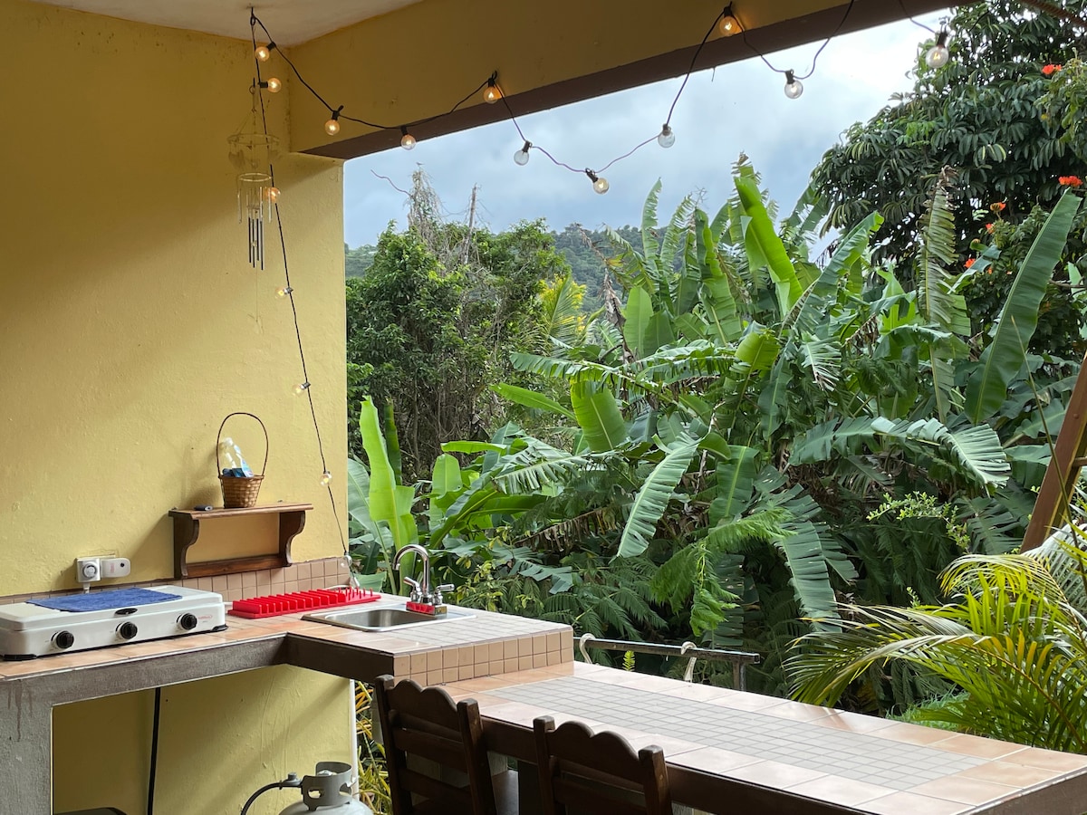 Enjoy the lovely setting of this romantic & magical cozy home . Hidden in the mountains of Naranjito . 45 minutes from the airport, you can immerse yourself in a unique, romantic experience in PR surrounded by nature. The view from the moment you enter our property is magical. Here you can find a hugely inspiring environment for your writing, reading, music, to spend quality time with your partner, to spend time alone. A magical place of art, peace, and inspiring.
