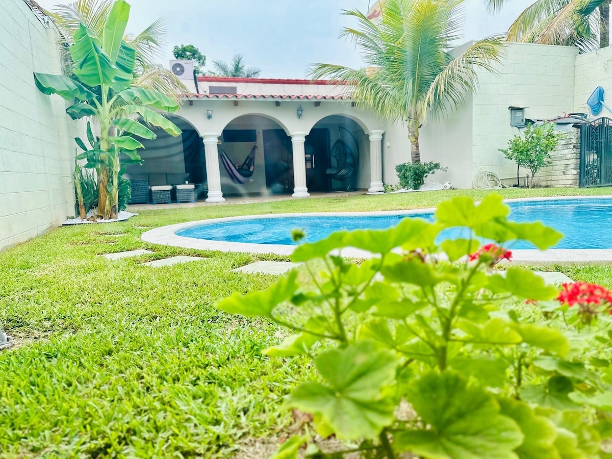 욕실 2개와 뒷마당이 있는 아름다운 침실 3개 숙소. In Residencial Bosques de Lourdes. 숙소 전체에 에어컨이 설치되어 있습니다. 온수, 정수기. 선풍기가 있는 뒷마당, 4인용 파티오 가구, 바비큐 시설. 세탁기와 건조기. 커뮤니티에는 공용 수영장, 농구 코트, 축구 코트가 있는 공원이 있습니다. 차량 2대용 주차장.