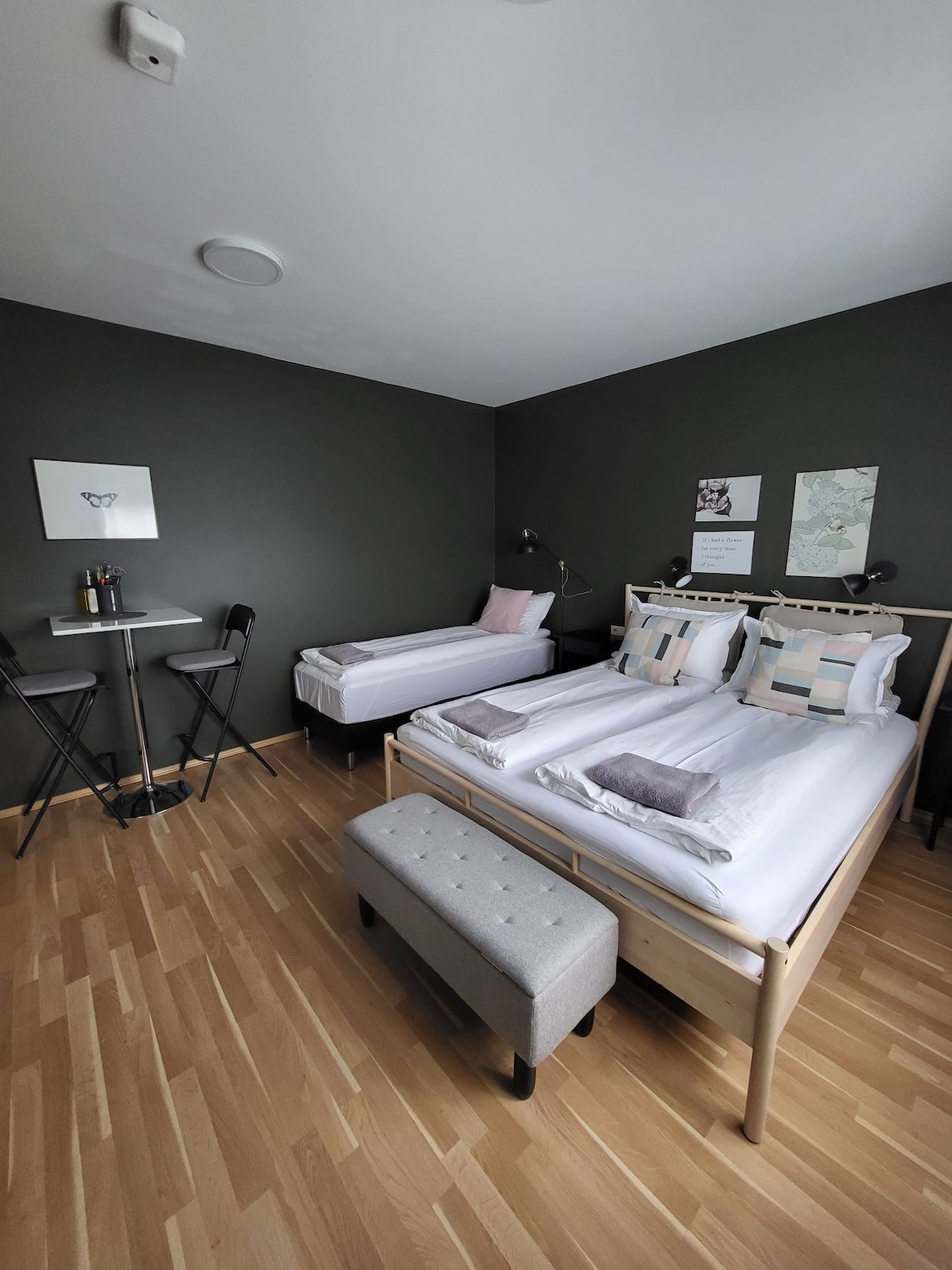 Budget Friendly 게스트하우스 (독채) 의 패밀리 스테이 (5명). 숙소는 케플라비크 큰길에 있습니다. 같은 층에 있는 공용 화장실 (다른 객실을 동시에 임대하는 경우). 게스트를 위한 무료 주차 공간. 주방이 없지만 전자레인지 오웬이 음식을 따뜻하게 해줍니다. 객실에는 소형 냉장고, 전기포트, 전자렌지 등이 구비되어 있습니다. 인근 주변에는 다양한 레스토랑과 상점이 있으며, 블루 라군까지 19km, 공항까지 5km 거리에 있습니다.