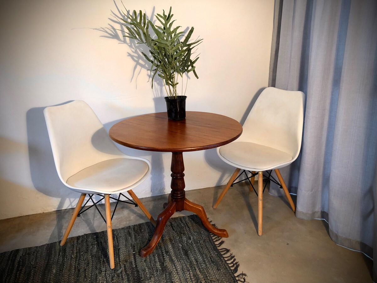 피트 스위트는 안전한 지역의 중심부에 위치한 전용 스위트를 제공합니다. 백업 태양열 발전으로 광섬유 및 LTE 인터넷 연결이 중단되지 않습니다. 숙소는 엄격한 금연 숙소입니다. 별도의 출입구, 공용 진입로가 있습니다. 침실, 넓은 라운지, 필수품이 구비된 간이 주방이 마련되어 있습니다. 욕실에는 수압이 뛰어난 큰 샤워기가 있습니다. 전용 파티오에서 커피를 즐기세요. 셀카를 제출해 주세요. 그렇지 않으면 예약을 확정할 수 없습니다.