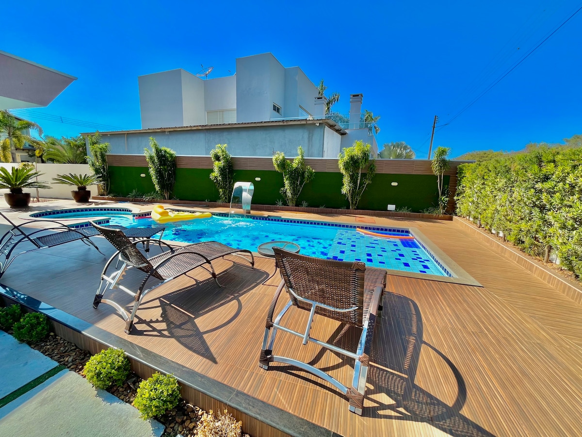 댐 앞에 위치한 현대적이고 편안하며 새로운 집, 수영장, 키오스크, 바비큐 시설. 다음과 같은 시설을 갖추고 있습니다: - 침실 3개 (스위트 2개) - 1 중이층 - 독립 욕실 2개 - 실내 및 야외 바비큐 시설 - TV가 있는 넓은 거실 - 주방 시설 완비 - 세탁실 - 6대의 차량을 위한 주차장 * 일년 중 어느 시기에는 비가 적어 댐의 수위가 낮을 수 있습니다. * 크리스마스, 새해 및 카니발 기간 동안 최소 5박 예약.