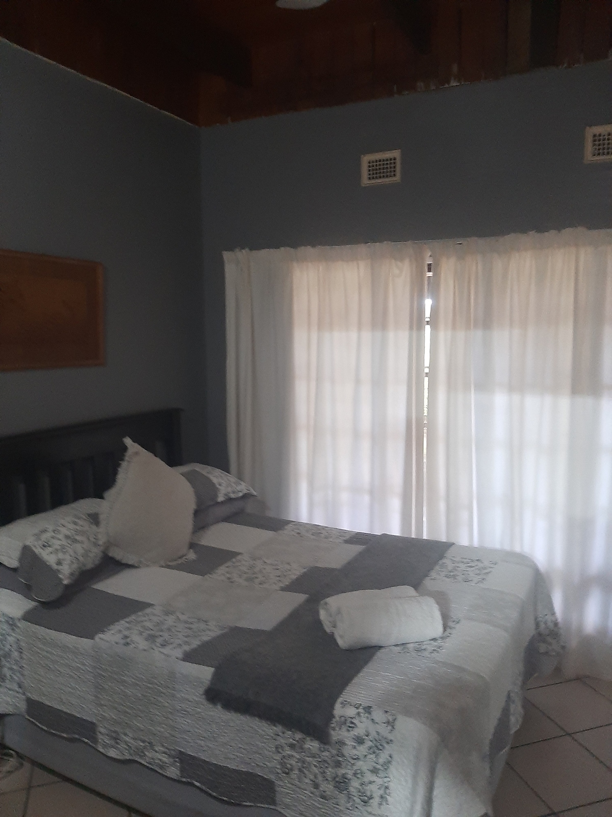 퀸사이즈 침대와 2일 슬리퍼가 있는 더블 침실. 플라잉프로우와 레드 헤링이 더 큽니다. 이 숙소는 부화장의 최전선에 있습니다. 욕실은 메인 침실에 있으며 침실 2개는 유리문과 커튼으로 나뉘어 있습니다.