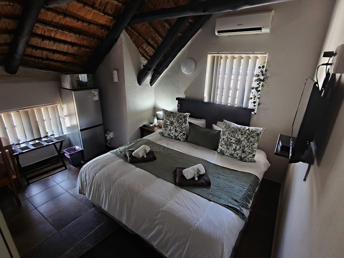 A very modern, neat and upmarket one-bedroom, open plan kitchen/lounge air-conditioned self-catering unit in a safe and friendly residential area. The unit can accommodate 2 adults and 2 kids. Load shedding \ power outage you ask?? Be prepared to experience life without loadshedding. We are practically off the grid. Rest assured; you will definitely feel at home at Kelly's rest!