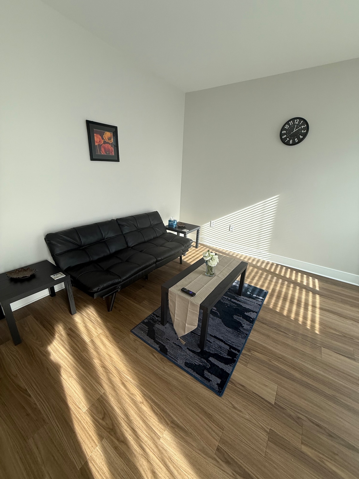 Enjoy a stylish escape saddled with modern comforts at a prime location in the city. This beautifully and well designed one bedroom apartment is spacious &presents a king bed along with two sofa beds. Enjoys a night of watching movies on the 120inch projector screen with tons of streaming apps & complimentary popcorn etc or shoot pool with friends. It features a coffee station and washer & dryer. Building has a gym, two outdoor space with grill, pool etc. Complimentary garage parking for 1 car.