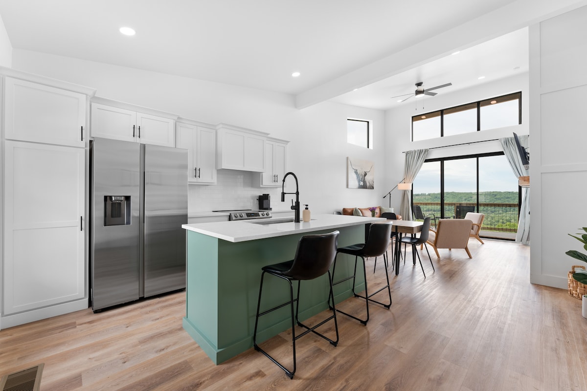 브랜슨 중심부까지 차로 금방 갈 수 있는 언덕 사이에 자리 잡은 이 평화로운 2베드룸 캐빈에서는 테이블록 호수의 숨막히는 전망을 감상할 수 있습니다. 새로 지어진 이 통나무집은 북적거리는 일상에서 벗어나 고요한 휴식을 즐길 수 있는 공간입니다. 현대적이면서도 우아한 인테리어로 꾸며진 이 캐빈은 따뜻함과 아늑함을 자아내며, 게스트가 긴장을 풀고 자연의 아름다움을 감상할 수 있도록 초대합니다. 바닥에서 천장까지 이어지는 창문으로 놀라운 전망을 감상할 수 있어 놓치고 싶지 않은 특별한 경험을 선사합니다.