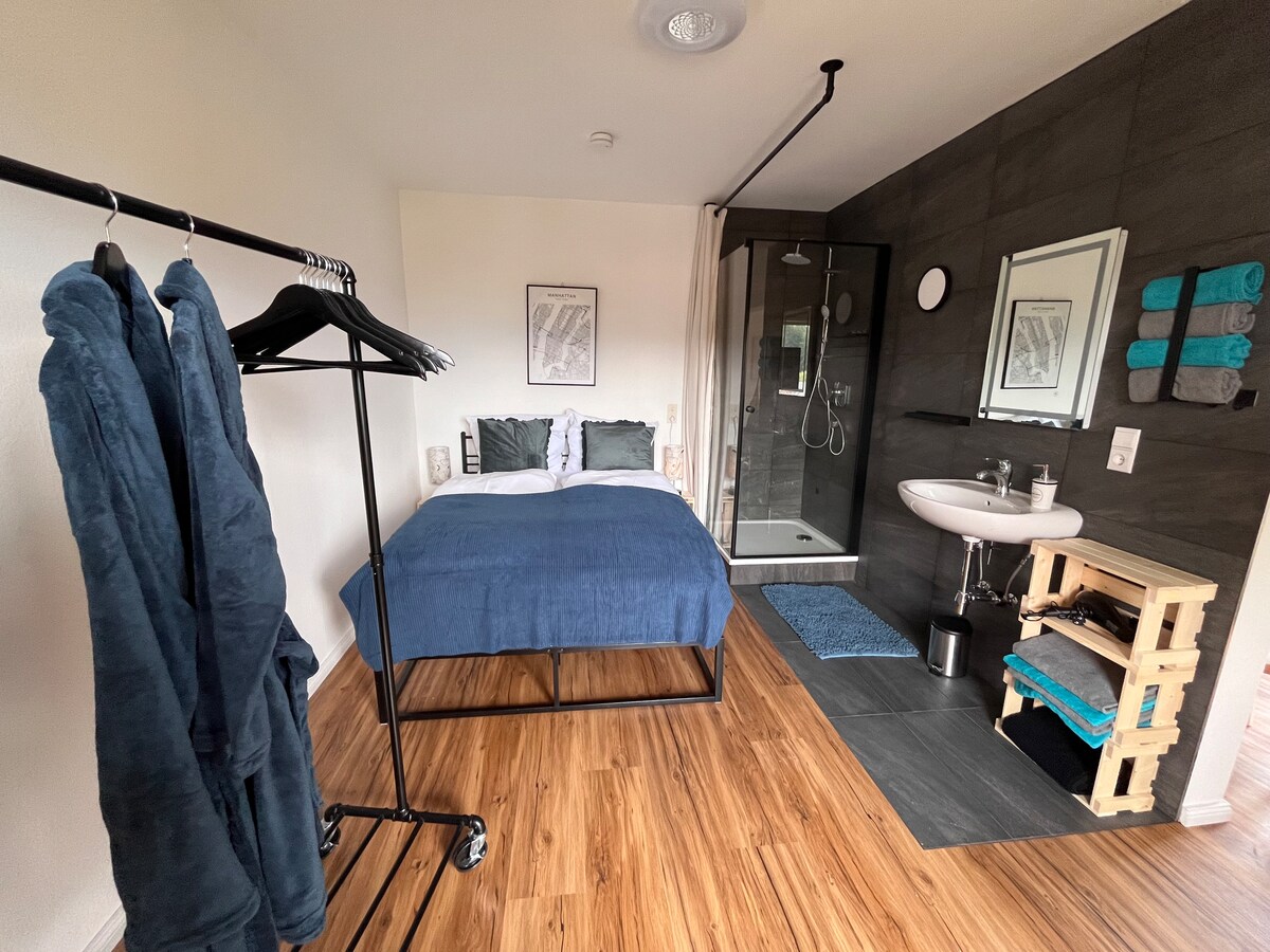 정원에서 직접 출입할 수 있는 사랑스럽게 가구가 배치되고 빛이 가득한 아파트는 할블레흐의 정착지에 위치하고 있습니다. 43평방미터이며, 거실과 수면 공간은 문으로 분리되어 있지 않습니다. 이 아파트는 최대 2명의 자녀를 둔 커플이나 가족에게 적합합니다. 더블 침대(180 x 200)와 소파 침대(140 x 195)가 넉넉한 공간을 제공합니다. 작은 간이 주방에는 인덕션 호브, 냉장고, 싱크대가 마련되어 있습니다.