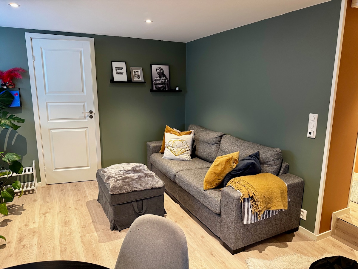지하 34㎡의 스튜디오 아파트 - 주방이 있는 넓은 호텔 객실과 같은 느낌 전용 ✨ 주차장, 전용 출입구, 열쇠 보관함을 이용한 간편한 체크인. 성인 1명 또는 2명 (커플) 에게 적합합니다. 🛏️ 좋은 컨티넨탈 침대 소프트/미디엄 & 드림존 골드 토퍼 😴 침대나 안락의자 쪽으로 돌릴 수 있는 크롬캐스트가 있는📺 TV - 문 밖 등산 공간 - 950m 키위 - 500m 파델 센터 + 스포티24 익스프레스 - 800m 네스 해수욕장 - 1.4km 클롭 비치
