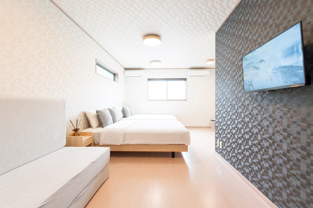 西海岸スタイルの新築です。清潔で快適なステイを提供します。 関西空港まで2駅10分、難波までは特急で30分の泉佐野駅から徒歩4分の立地で、隣のりんくうタウン駅には温泉施設やアウトレットモールがあります。 簡易キッチンあり。フライパン、包丁、まな板、食器、カトラリー類も揃えております。すぐ近くにコインパーキング(440〜500円)があります。 ご家族での滞在はもちろん、シャワー、洗面台、トイレが2つずつありますので、大人数の宿泊にも向いています。 予約リクエスト後にこちらからメッセージいたしますのでご確認ください。返信確認後ご予約確定となります。 ※施設内の怪我や紛失は一切責任を負いません。小さなお子様がいらっしゃる場合は、階段周りにお気をつけください。