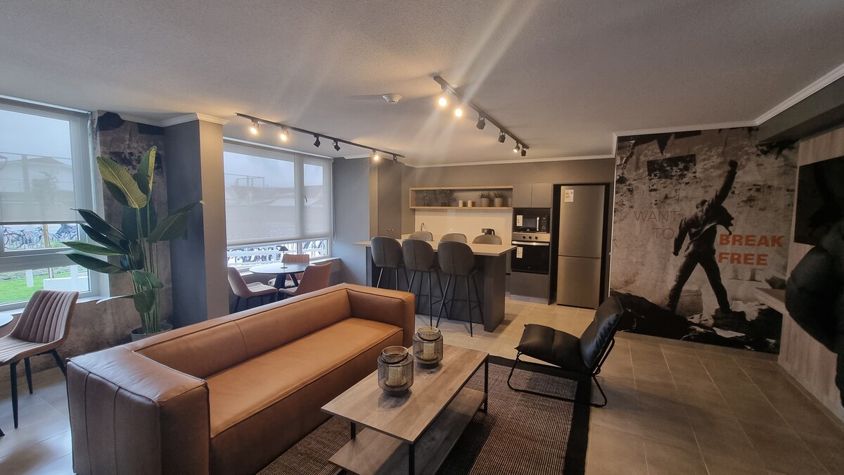 알라메다 데 탈카에 위치한 현대적인 아파트로, 편리함과 편안함을 찾는 분들에게 이상적입니다. 쾌적한 숙박을 위해 필요한 모든 것을 갖추고 있습니다. 옷장이 있는 침실 2개, 고급 침구와 수건, 에어컨이 있는 거실, 아름다운 전망과 주방이 있는 발코니, 3인용 시설, 셀프 체크인. 특권적인 위치, 펍과 레스토랑, 은행, 슈퍼마켓, 쇼핑센터, 극장, 아르마스 광장에서 몇 걸음 거리에 있습니다.