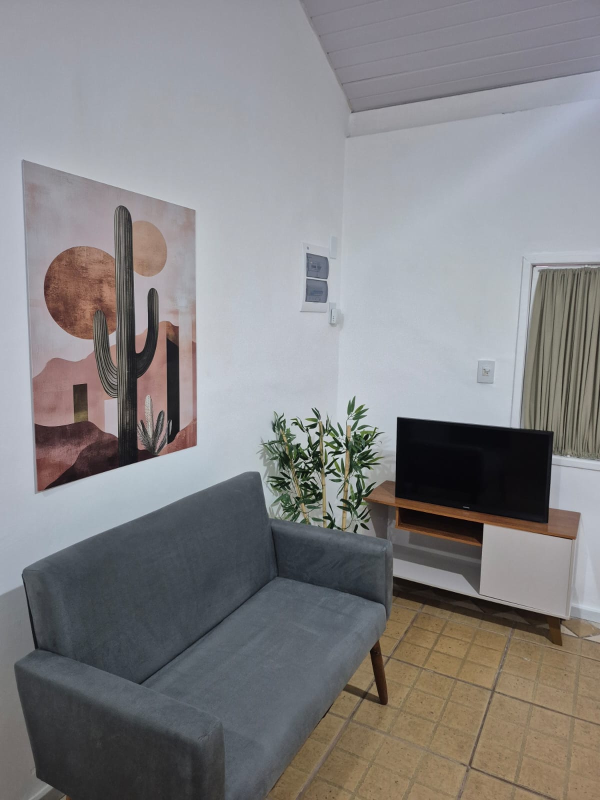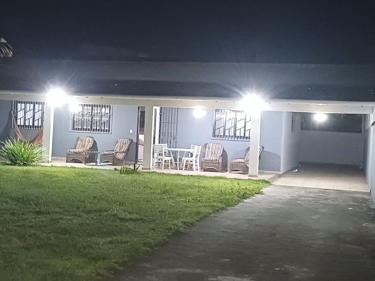 Casa mobiliada, segura e arejada. 2 quartos espaçosos com persianas anti-alérgicas, telas mosquiteiras e grades nas janelas, quintal gramado, churrasqueira, portão automático, interfone, INTERNET 400MB. Quarto I c/ cama Queen Size e split, quarto II com 3 camas de solteiro, ar condicionado e TV apenas p/ receber video-game. Sala com SmartTV 40"c/IPTV), ventilador teto e sofá, cisterna , caixa d'água com bomba automática. Enxoval e utensílios domésticos completo. Aceitamos Pet de pequeno porte.