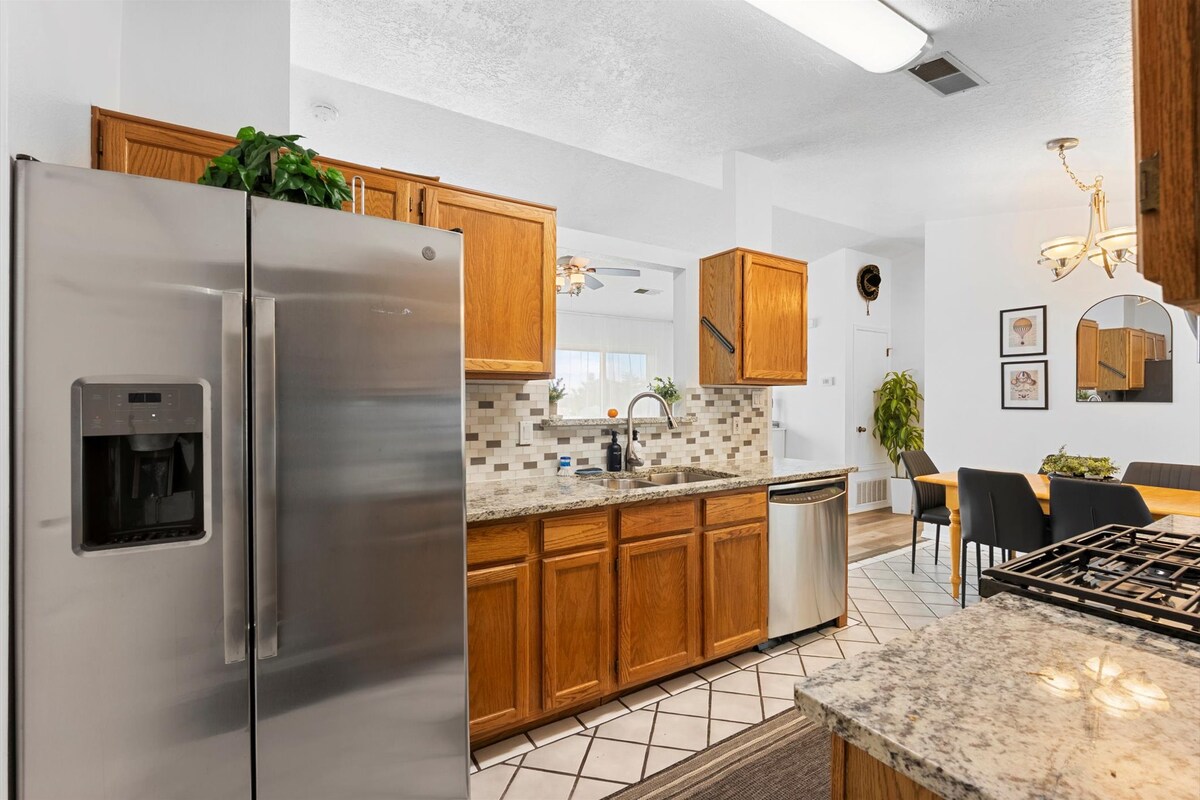 영화 및 이벤트 업계의 인기 체험 이 멋진, 중심부에 위치한 3,000평방 피트의 현대적인 농가는 밝고 넓고 아늑한 휴양지를 제공합니다. 침실 3개, 욕실 2.5개, 6인용 객실을 갖추고 있어 가족 여행, 출장, 소규모 모임에 안성맞춤입니다. 레스토랑, 쇼핑, 박물관, 공항, ABQ 바이오파크, 벌룬 피에스타 공원에서 단 몇 분 거리에 있어 앨버커키가 제공하는 모든 것에 가깝습니다. 질문, 특별 요청 또는 장기 숙박이 있으시면 저에게 문의해 주세요.