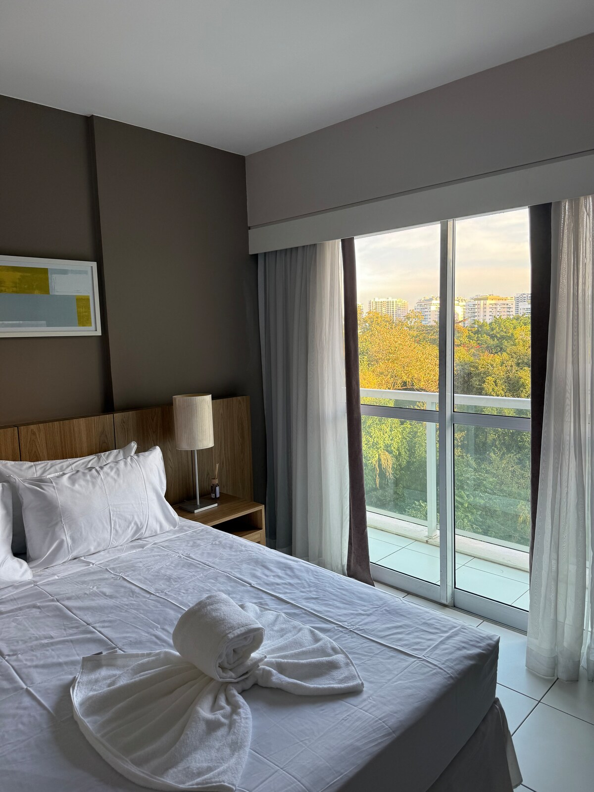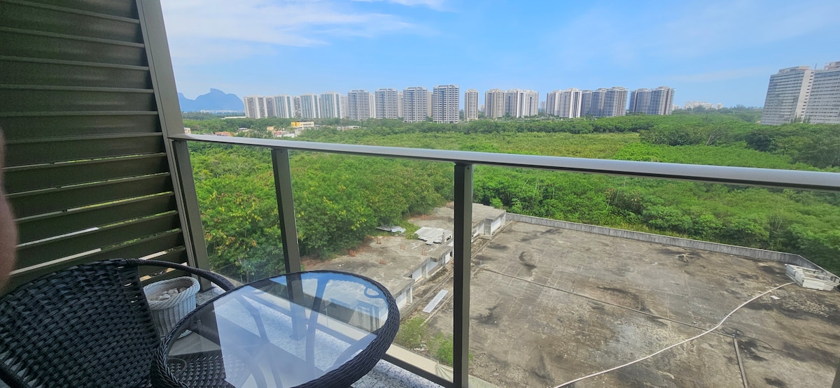 Suíte para as suas necessidades de Negócios ou Lazer, no ponto estratégico da Barra Olímpica próximo ao Rio Centro, Parque Olímpico, Farmasi Arena. 15min da Praia do Recreio. Suíte com Frigobar, Ar condicionado, Secador de cabelo, cama King de alto padrão, no melhor padrão dos melhores Hotéis. Internet Disponível (350M) e TV Smart 65" A Melhor vista da Barra, com sinfonia de pássaros ao amanhecer. É o lugar que vc quer pra vc. Barra da Tijuca e Recreio dos Bandeirantes