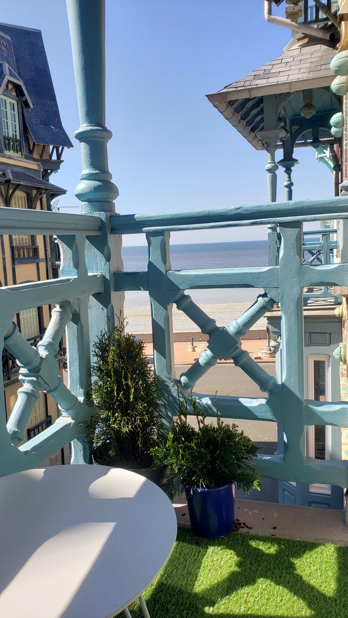 Charmant appartement de 40 m2 au 2ème étage d'une villa anglo normande, style Belle époque et datant de 1904. La façade à été restaurée et préservée et l'intérieur refait à neuf. Vue latérale sur la mer depuis le balcon. On accède à la plage en traversant la rue (50 m de la villa). Appartement tout confort (TV , cuisine équipée). Couchages pour 3 pers:chambre avec lit en 140 et lit d'appoint ou canapé lit 1 place dans le salon. Les voyageurs apporteront leurs draps et serviettes de toilette.
