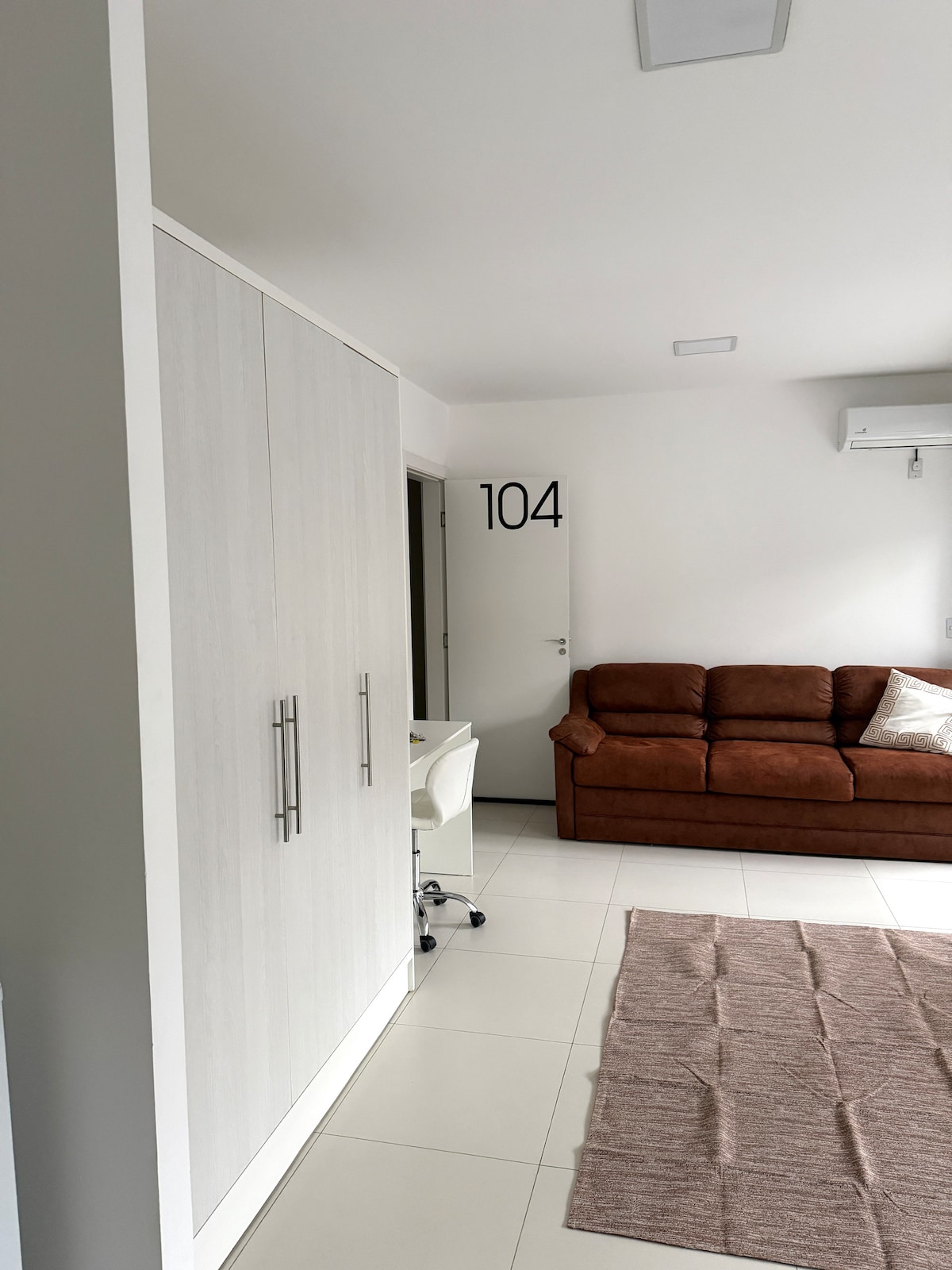 Quarto com cama de casal e 2 camas de solteiro. Sala com cozinha americana completa. Cama de casal e sofá. Televisões (2). Ar condicionado nas 2 peças. Dois banheiros completos. Inclui uso comum do saguao e patio interno no terreo. Wifi. Quarto com duas camas de casal, ar condicionado e televisão. Estacionamento fechado. carro extra será cobrado separado. Junto da Unipampa e da Uergs, próximo da fronteira com o Uruguai, próximo aos free shops, padarias e restaurantes. Você se sentira em casa.