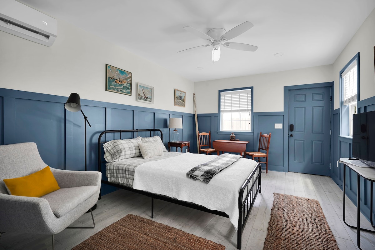 새로운 주방과 전용 출입구가 완비된 풀 사이즈 원 베드룸 하우스입니다. 숙소 전체가 2021년 말에 리노베이션되었습니다. 킹사이즈 침대(TV 포함)와 성인 1명 또는 어린이 2명이 사용할 수 있는 트윈 사이즈 소파 베드가 준비되어 있습니다. 주방에는 풀 사이즈의 새 오븐, 스토브, 전자레인지, 식기세척기, 냉장고가 있으며, 식기 등을 갖추고 있어 식사를 하거나 장기간 머물 수 있습니다. 무료 노외 주차장이 하나 있으며 무료 노상 주차장이 많이 있습니다.