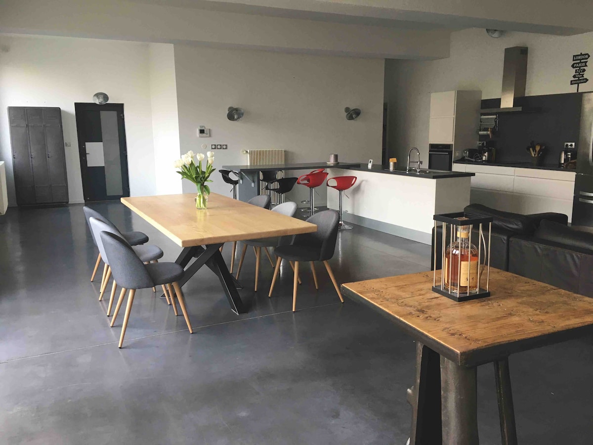 중심가에서 2걸음 거리에 있는 95m2의 따뜻한 듀플렉스에 오신 것을 환영합니다. 더블 베드룸 4개, 에어컨 2개, 전용 샤워실 1개. 두 번째 욕실이 있습니다. 사무실 및 와이파이 구비 넓은 주방이 밝은 거실 겸 식사 공간으로 열립니다. 시설이 완비되고 그늘진 테라스를 이용하실 수 있습니다. 주차장 근처에 충전기가 있습니다.