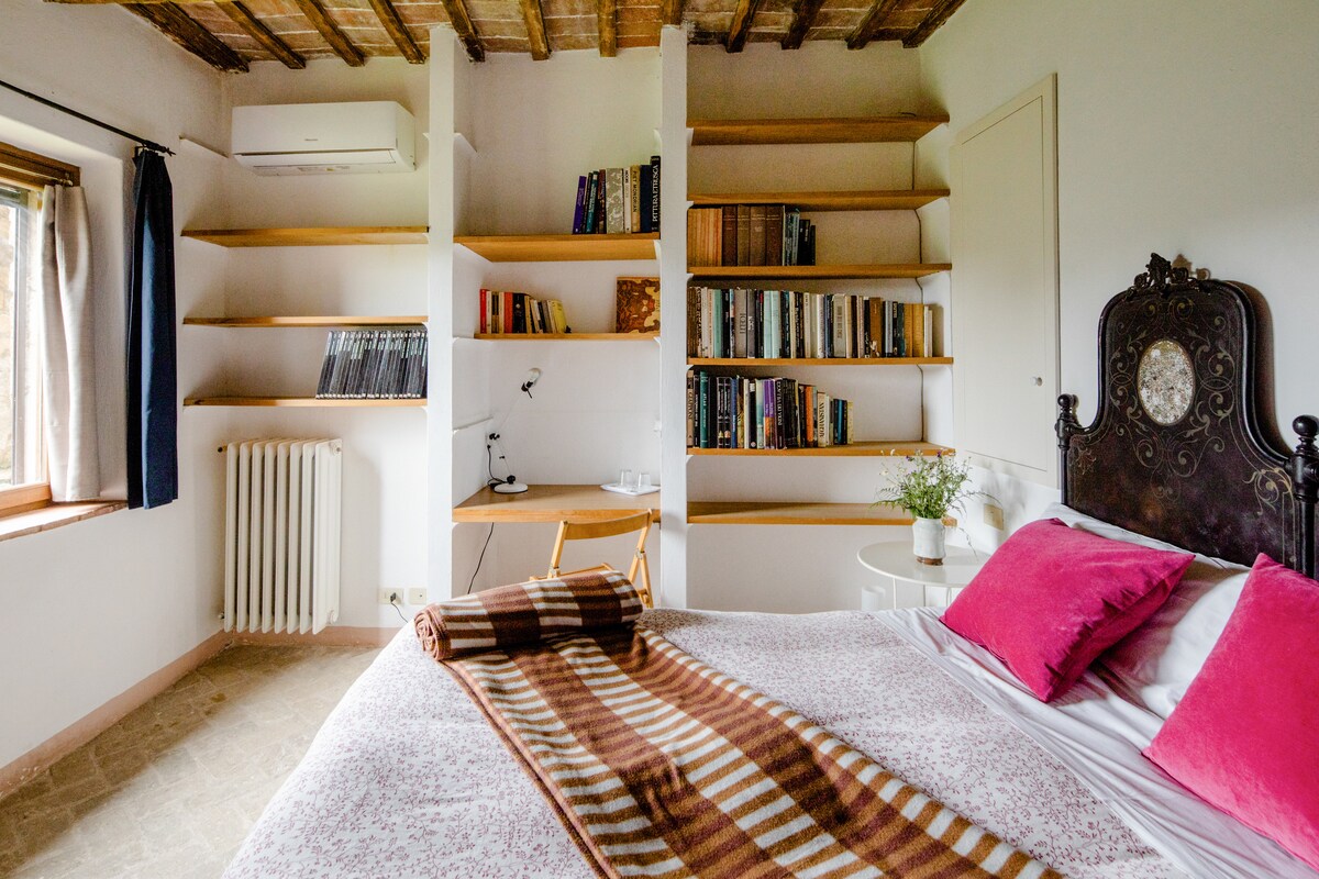 Experience the magic of the Tuscan countryside in this double room with private bathroom, furnished in Tuscan style, and designed for couples seeking relax and a romantic atmosphere. Equipped with air conditioning and Wi-fi i is the ideal place for a peaceful getaway surrounded by nature. Guests can enjoy a panoramic swimmingpool in the garden, outdoor relax areas and a welcoming shared lounge. A traditional Tuscan breakfast is included and served every morning to start the day with flavour.