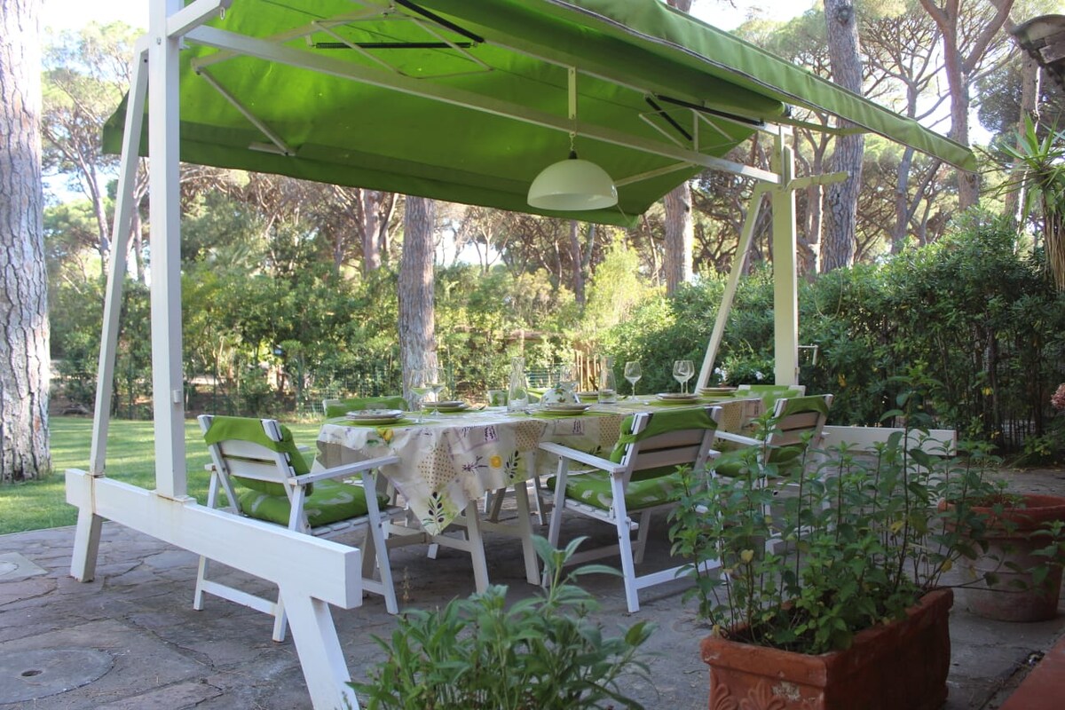 빌라 칼라(침대 7개+3개)는 더블 침실 2개, 이층 침대가 있는 침실 1개, 싱글 침실 1개, 샤워기가 있는 욕실 2개, 주방, 싱글 소파 베드가 있는 거실, 반도형 소파(침대 150 x 180)로 구성되어 있습니다. 수백 년 된 소나무 숲에 가려진 매우 크고 독점적인 정원에는 테이블, 파라솔, 의자가 마련되어 있습니다. 전기식 플레이트 4개, 전기식 오븐, 전자레인지, 식기세척기가 완비된 주방, 와이파이. 바다는 300m 거리에 있으며 전용 해변이 있습니다.