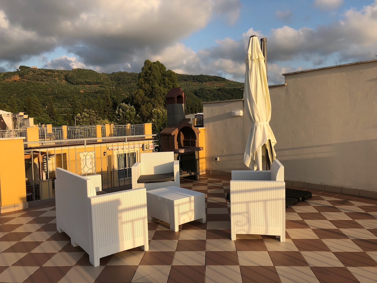 2층에 위치, 독립하여 다음과 같이 구성되어 있습니다. - 에어컨, TV, 소파가 있는 대형 주방 - 바다 전망을 감상할 수 있는 발코니가 있는 마스터 침실 - 이층침대와 싱글베드가 있는 침실 - 욕실이 완비되어 있습니다. 니코테라는 멋지고 전형적인 바닷가 리조트이며, 대부분 모래 해변을 즐길 수 있지만, 매우 특징적이고 바위가 많은 최종 스트레칭을 즐길 수 있습니다. 카포 바티카노와 트로피아와 같은 매혹적인 장소가 몇 킬로미터 거리에 있으며, 반대편에는 "브론제" 와 유명한 바닷가가 있는 실라와 RC가 있습니다.