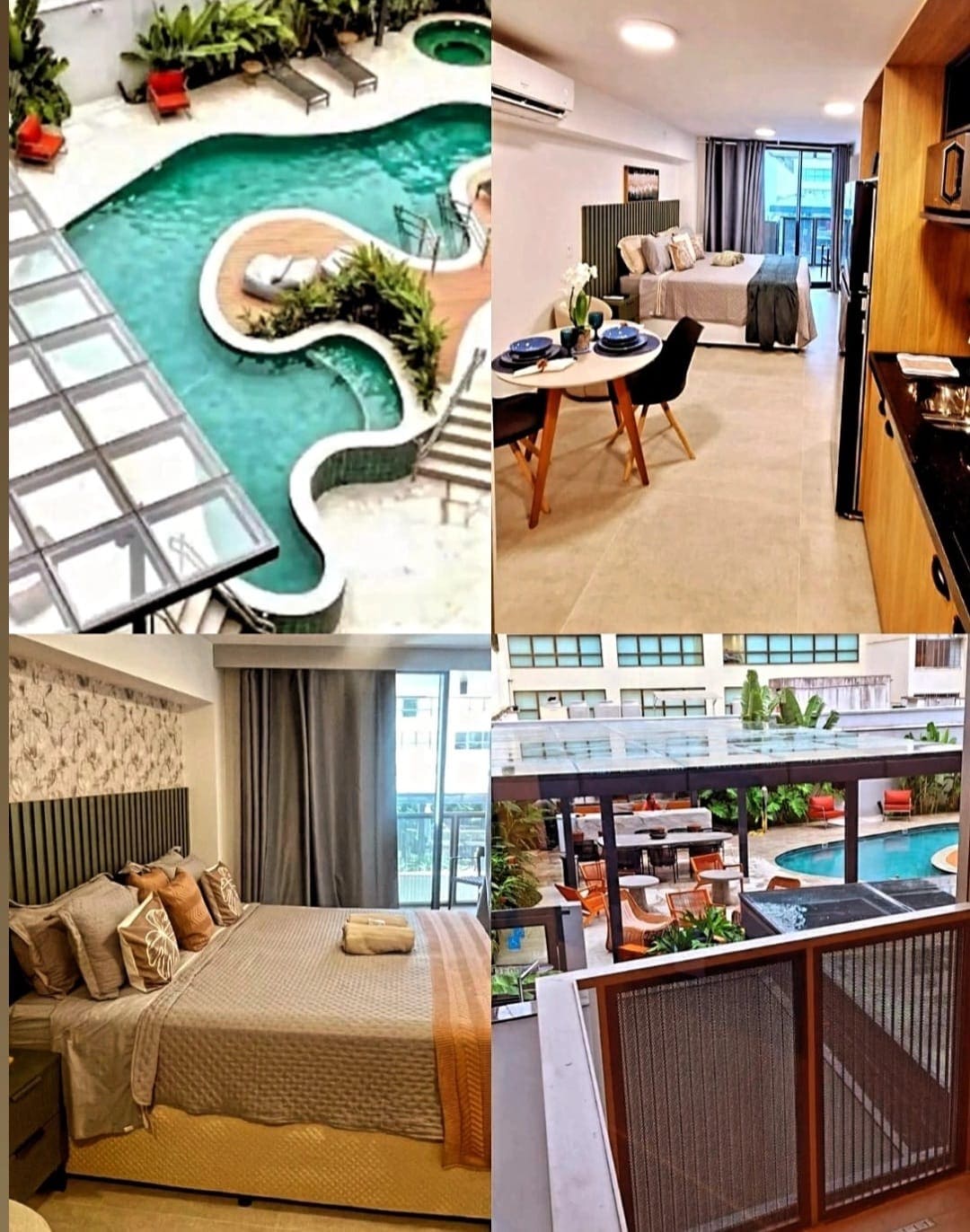 주의 꼼꼼히 읽어주십시오 : 할인 혜택을 제공하지 않습니다. 양해 부탁드립니다. 건축가가 설계한 새로운 듀플렉스 스튜디오: 고급 침구가 구비된 더블 침대 1개, 소파 베드(1인용) 및 주방. 테이블과 의자가 있는 테라스. 공용 거실과 식당이 있는 고급 건물, 와이파이가 설치된 홈 오피스 테라스, 세탁기 4대/건조기 4대가 있는 세탁실, 공용 수영장과 그리스도 구세주상 전망을 자랑하는 루프탑