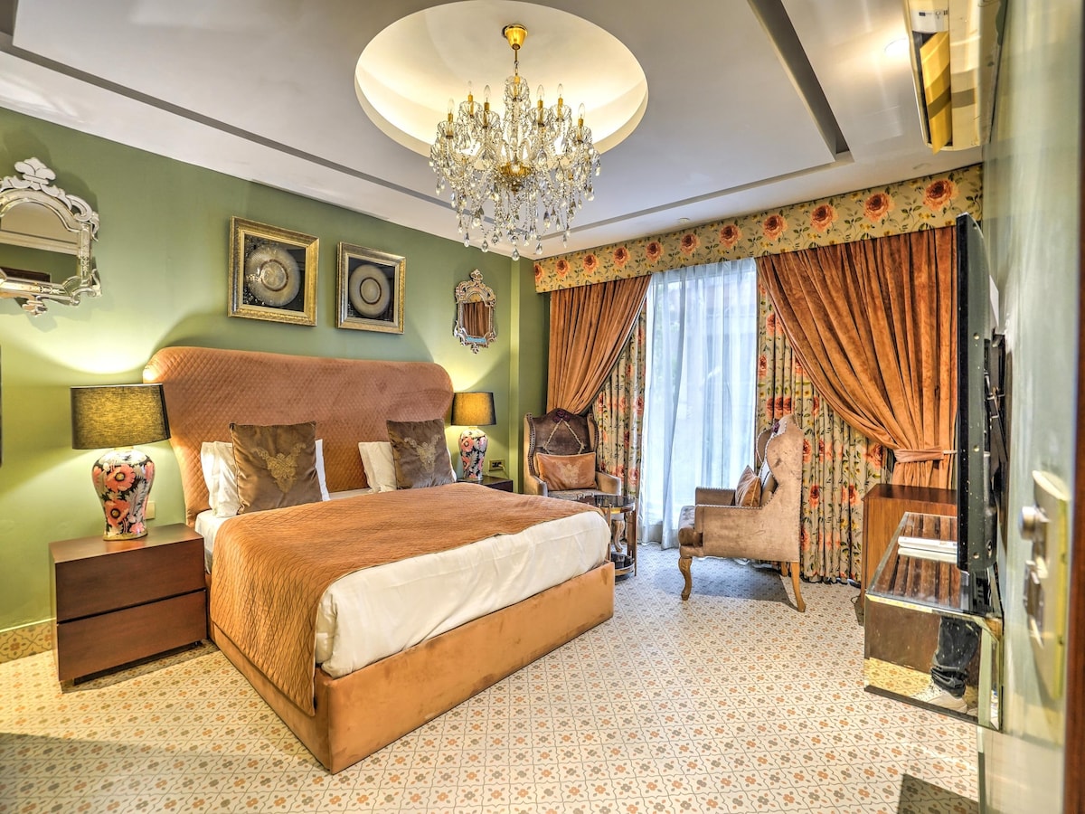 부티크 호텔 로열 캐슬 그랜드 C R 파크에 위치한 스위트룸입니다. 흥미로운 특징: -6피트 길이의 침대 - 소파 겸 침대 1개 -65인치 LED TV -500리터 냉장고 - 소파 좌석 8개 가족이 동반 숙박하기에 좋습니다.