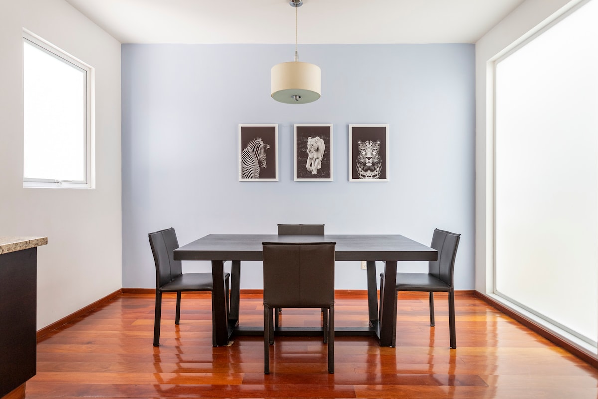 -현대적이고 새로운 건물 -멕시코 공원이 보이는 발코니 -멕시코 공원과 레포르마의 전망을 감상할 수 있는 루프톱 테라스와 새로운 헬스장 -장기 숙박 및 기업 출장을 위해 설계된 가구가 완비된 숙소 - 무료 세탁 시설 - 하우스키핑 서비스: 7박 이상 예약 시 일주일에 한 번 니도 파르케 멕시코는 멕시코시티 전체에서 가장 좋은 위치에 있는 놀라운 건축물로, 라 콘데사의 중심부에 있는 파르케 멕시코가 내려다보이는 코너에 있습니다.