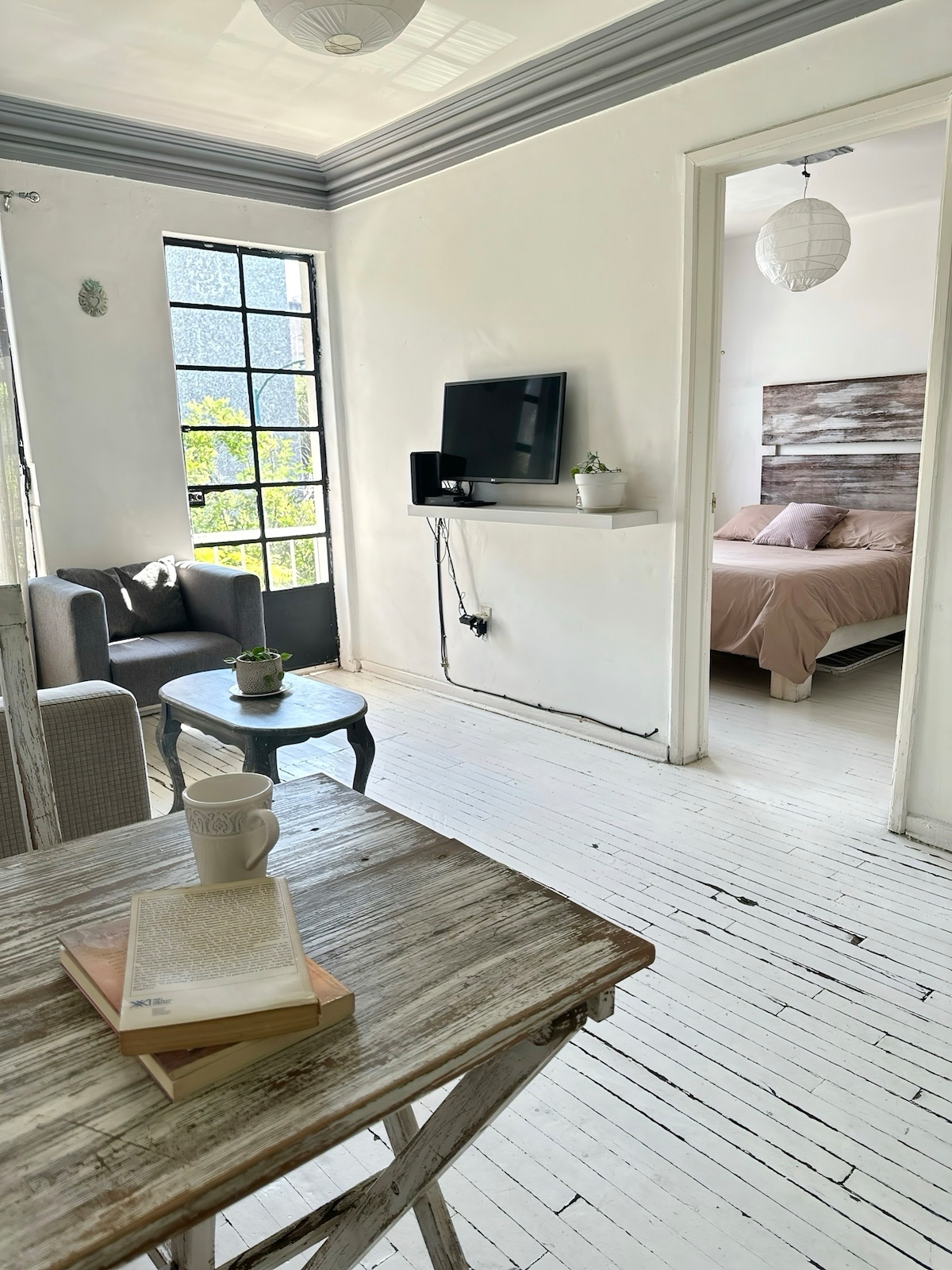 Sunny boho flat in Roma Sur. Fast WI-FI