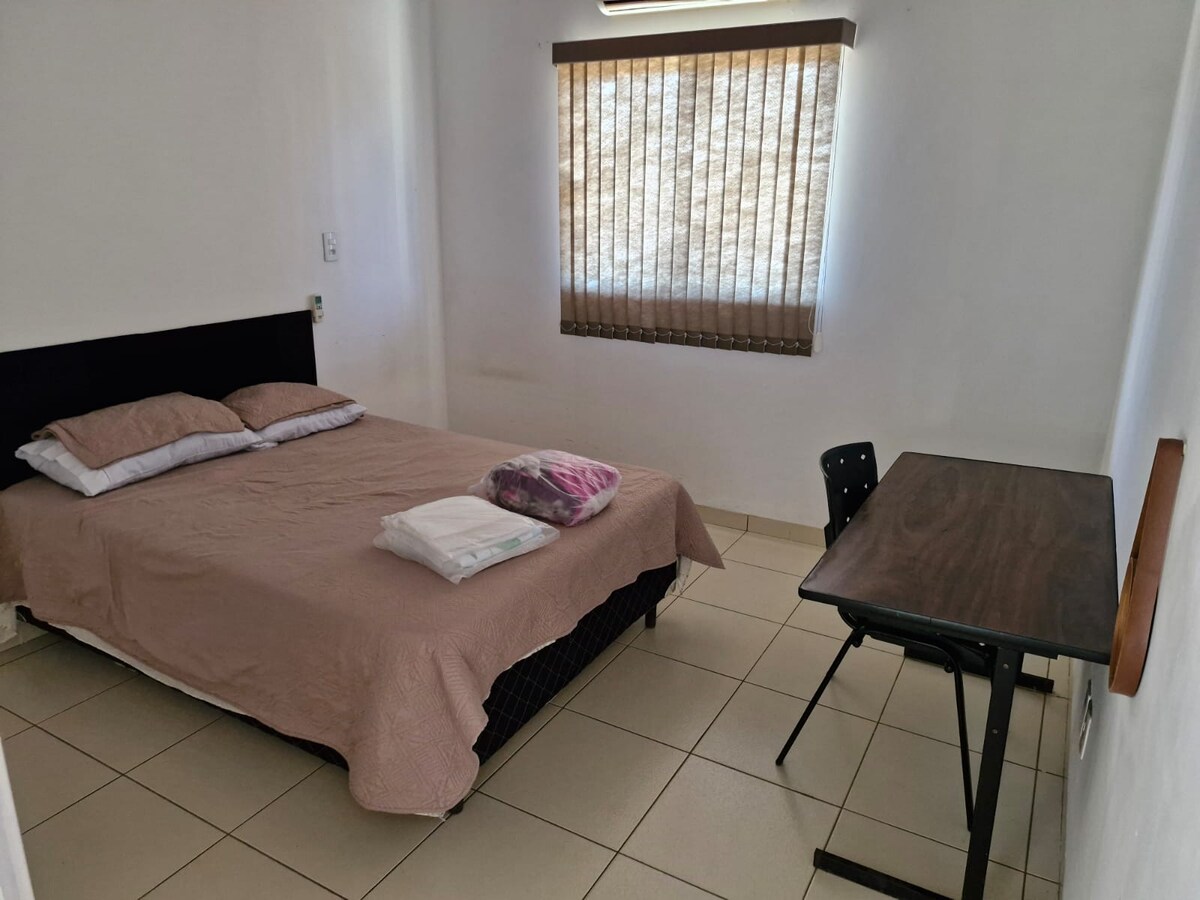휴식을 취하기에 이상적입니다! 훌륭한 위치입니다! 쇼핑몰, 레스토랑, 슈퍼마켓, 약국 등에서 가깝습니다. - 더블 침대와 에어컨이 구비된 침실 1개 더블 매트리스 1개, 싱글 매트리스 1개, 업무용 책상 1개, 천장형 선풍기가 있는 침실 1개 - 전기 샤워실이 있는 욕실 - 소파, 에어컨, 42인치 TV, 식탁이 있는 객실; - 가스레인지, 냉장고, 식기가 구비된 주방. - 와이파이 인터넷 및 차량 1대용 차고. 조용하고 위치가 좋은 이 숙소에서 소박함을 느껴보세요!