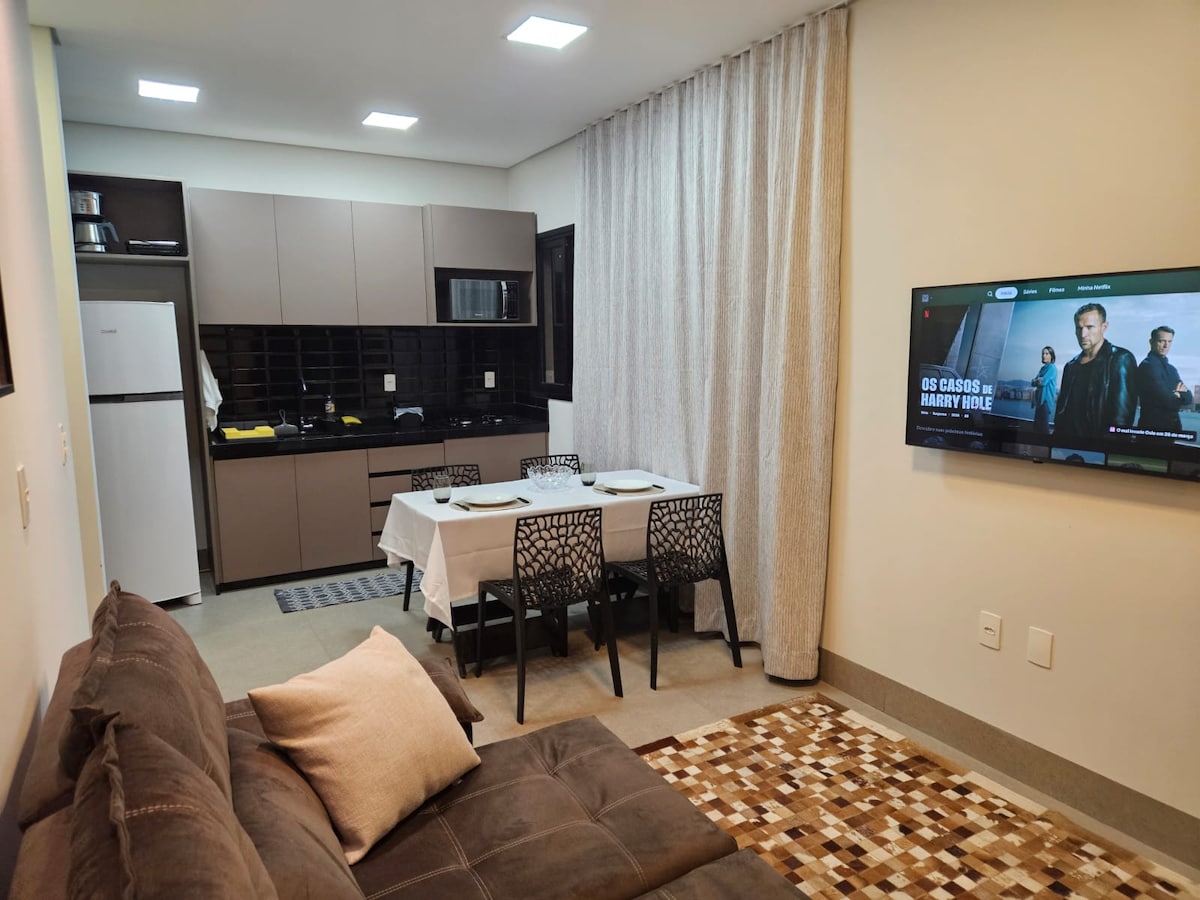 Relaxe neste cantinho tranquilo e acolhedor! Perfeito para quem vem a Rondonรณpolis a passeio ou a trabalho, este apartamento fica em um condomรญnio fechado, seguro e silencioso. O espaรงo รฉ completo e aconchegante, com uma cozinha equipada com tudo o que vocรช precisa para preparar suas refeiรงรตes. Os quartos contam com roupas de cama e banho, alรฉm de ventiladores para o seu conforto. Na sala, sofรก e TV para momentos de descanso. * Colchรฃo extra disponรญvel para maior flexibilidade nas acomodaรงรตes.