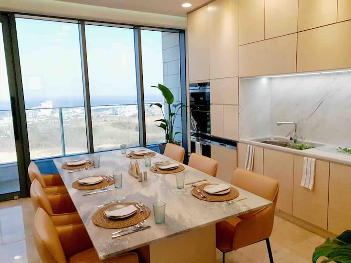 Dining Area _ 천연대리석 6인용 식탁 by head designer soom l WMF 양식 & 한식 식기세트 l SIEMENS 빌트인 인덕션, 전자레인지 l 냄비, 프라이팬, 접시, 그릇, 머그컵, 와인잔 등 4인용 식기류 l 핸드드립 커피 세트, 티팟 l 리트리트 숨soom 블렌드 커피, 허브티 l 전기압력밥솥, 냉온직수정수기