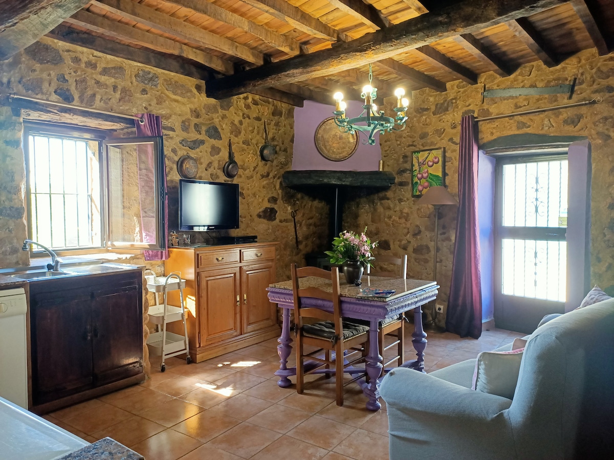 산 한가운데에 위치한 석재와 목재로 지어진 집, 150cm 넓이의 침대 3개, 소파 베드, 최대 7명까지 수용 가능, 주방 시설 완비, 욕실 1개, TV, 와이파이, 에어컨, 장작 난로.... 수영장은 게스트 전용이며 5월 말부터 비가 오기 시작하는 가을까지 운영됩니다. 바비큐 시설이 갖춰진 전용 야외 정원 담배와 피멘톤을 건조하던 오래된 건물을 복원하여 현대적인 감각을 더한 편안하고 아늑하고 소박한 공간입니다.