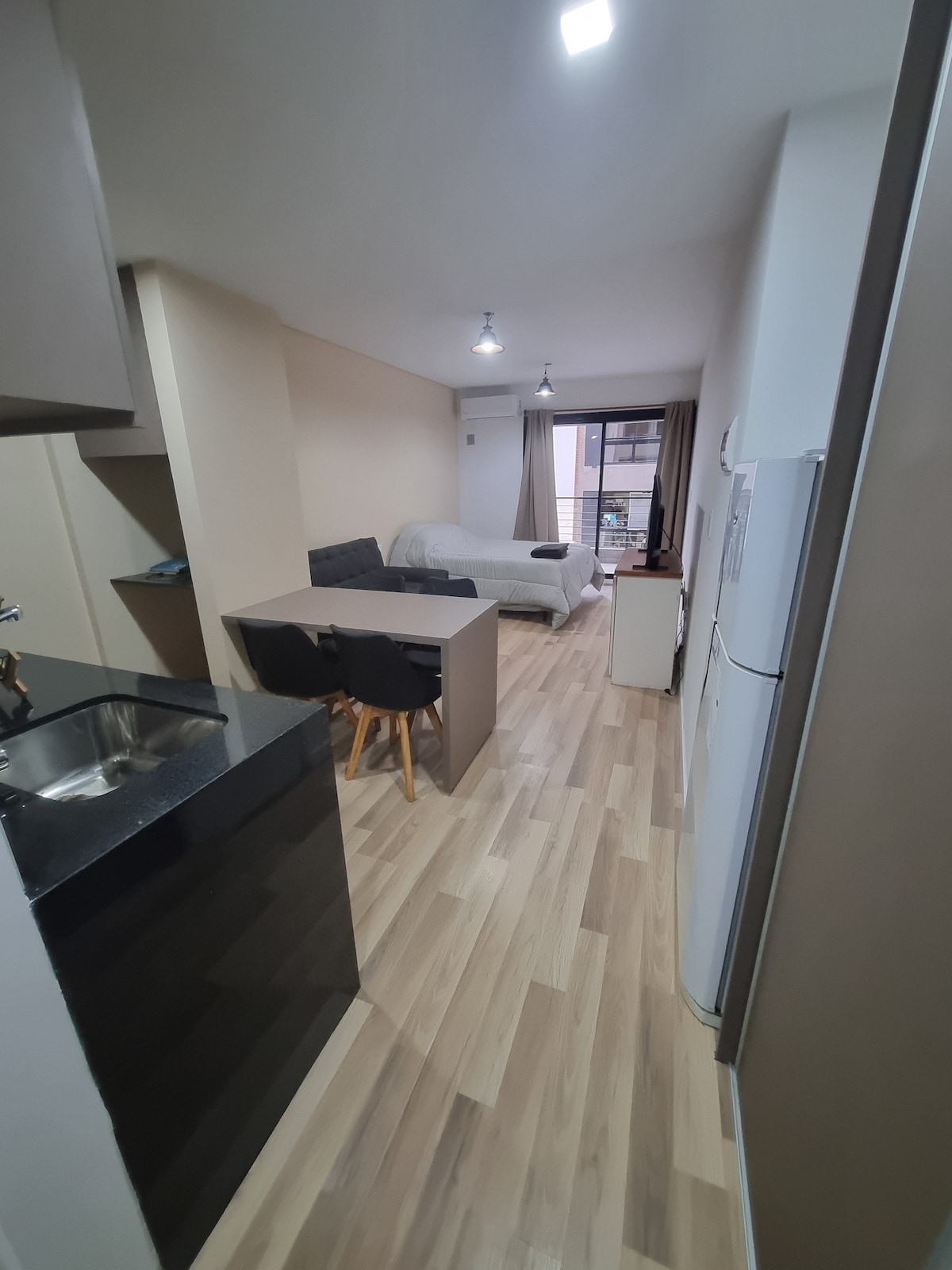 Disfruta de Rosario,somos Mari y Hugo queremos recibirlos y que la pasen bien! Nuestro Dto es confortable,seguro ,cรกlido,mobiliario nuevo,1 dor matri,tv 32',living sofรก 2 pers,tv LED 50',2 aires acondicionados y 2 ventiladores,Cocina separada,300 mts de Bv.Oroรฑo y Pichincha, 250 metros del Rio,en 100 metros farmacia, super,5 minimarket,heladerรญa,lavadero ropa,todo lo necesitas. Estacionamiento cubierto en la misma manzana de pago.En la calle gratuito despues 20 hs y sรกbados y domingos 24 hs.